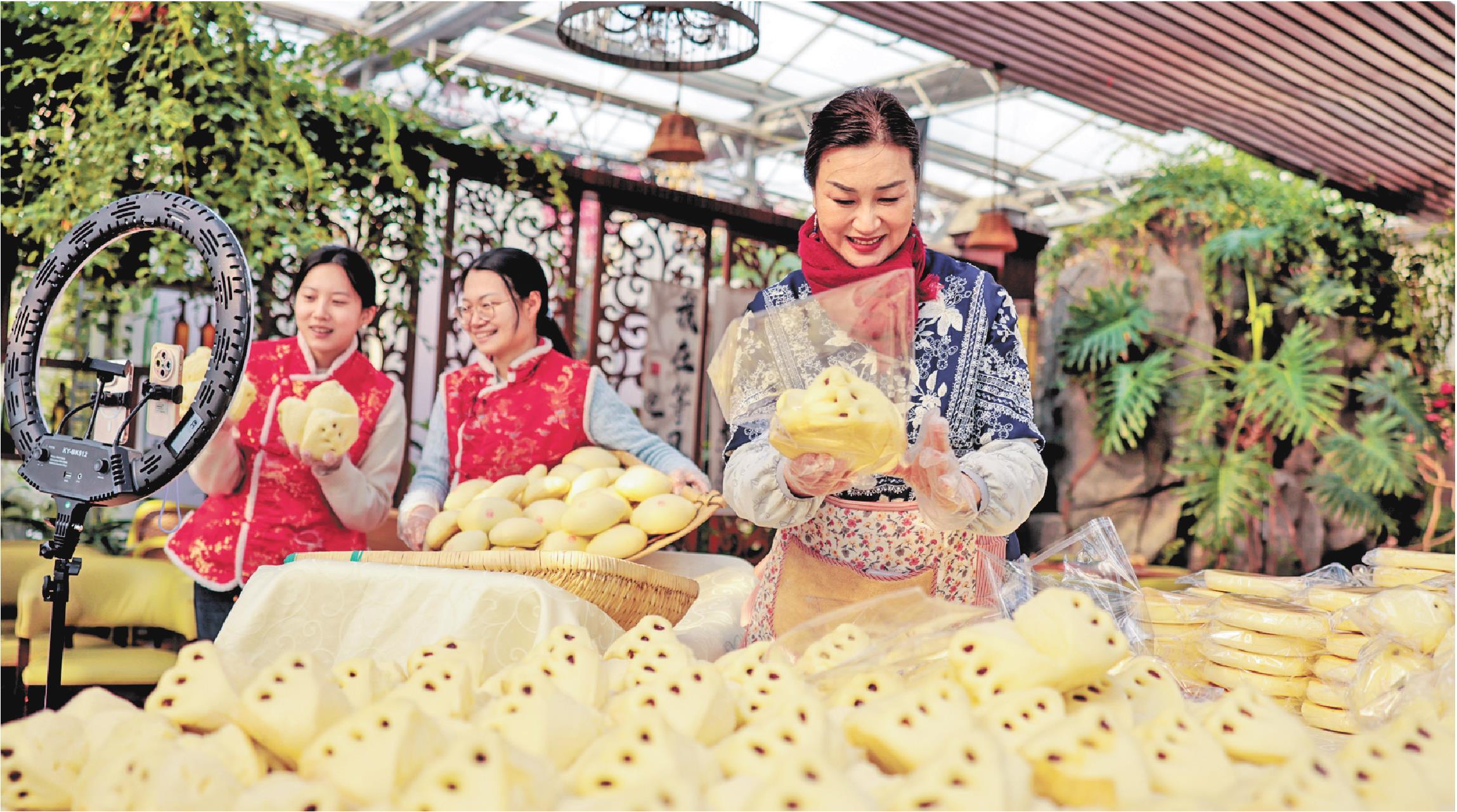 近年来,荣成妇联依托巾帼创客圆梦基地,组织妇女参与直播培训和社群团购,引领花饽饽产业通过线上社群带货,线下大赛展销等模式,推动“胶东花饽饽”通过电商渠道走向全国各地,让老手艺“蒸”出致富路。(记者 陶相银)