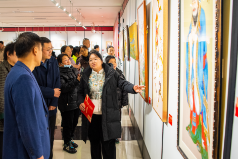 职工美术馆里,莱芜木版年画、济南剪纸、济阳农民画、鲁绣、麦秸画、济南刻瓷等10余个国家级、省级非遗项目,200余件精品佳作集中亮相。从清光绪年间传承至今的木版年画,到有着两千年历史的鲁绣;从以刀代笔的刻瓷技艺,到融自然与匠心的叶雕艺术,一件件非遗作品匠心独运、各美其美,既展现了泉城非遗的深厚底蕴与独特魅力,也让职工群众沉浸式感受传统工艺的精湛技艺。