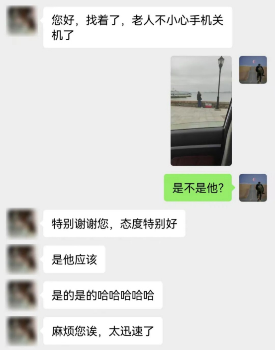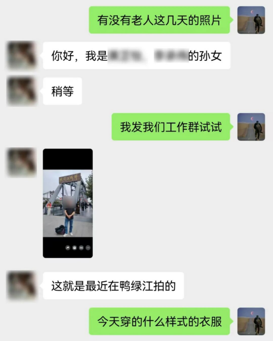 “老人联系上了。”黄女士发来信息,几乎是同时,向佳鑫这边也在景区找到了老人:“您看看,这是不是咱家老人?”