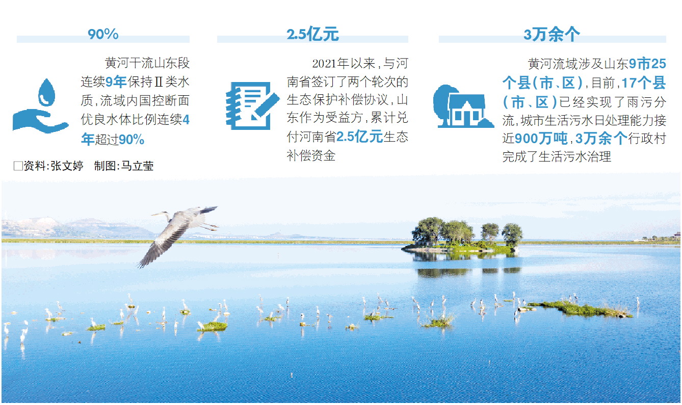 落实好黄河流域生态保护和高质量发展战略部署,要坚定不移走生态优先、绿色发展的现代化道路。近年来,山东扎实推动黄河流域生态保护和高质量发展,以改革之进促水质之变。山东率先在全国实现县际流域横向生态补偿全覆盖,全省拥有跨界河流的133个县(市、区)全部签订协议,共涉及断面301个。2024年,全省153个地表水国控断面优良水体比例达79.1%,V类及以下水体动态清零。黄河干流山东段全线稳定保持Ⅱ类水质,流域内国控断面优良水体比例连续4年超过90%。(记者 修从涛 曾轲)