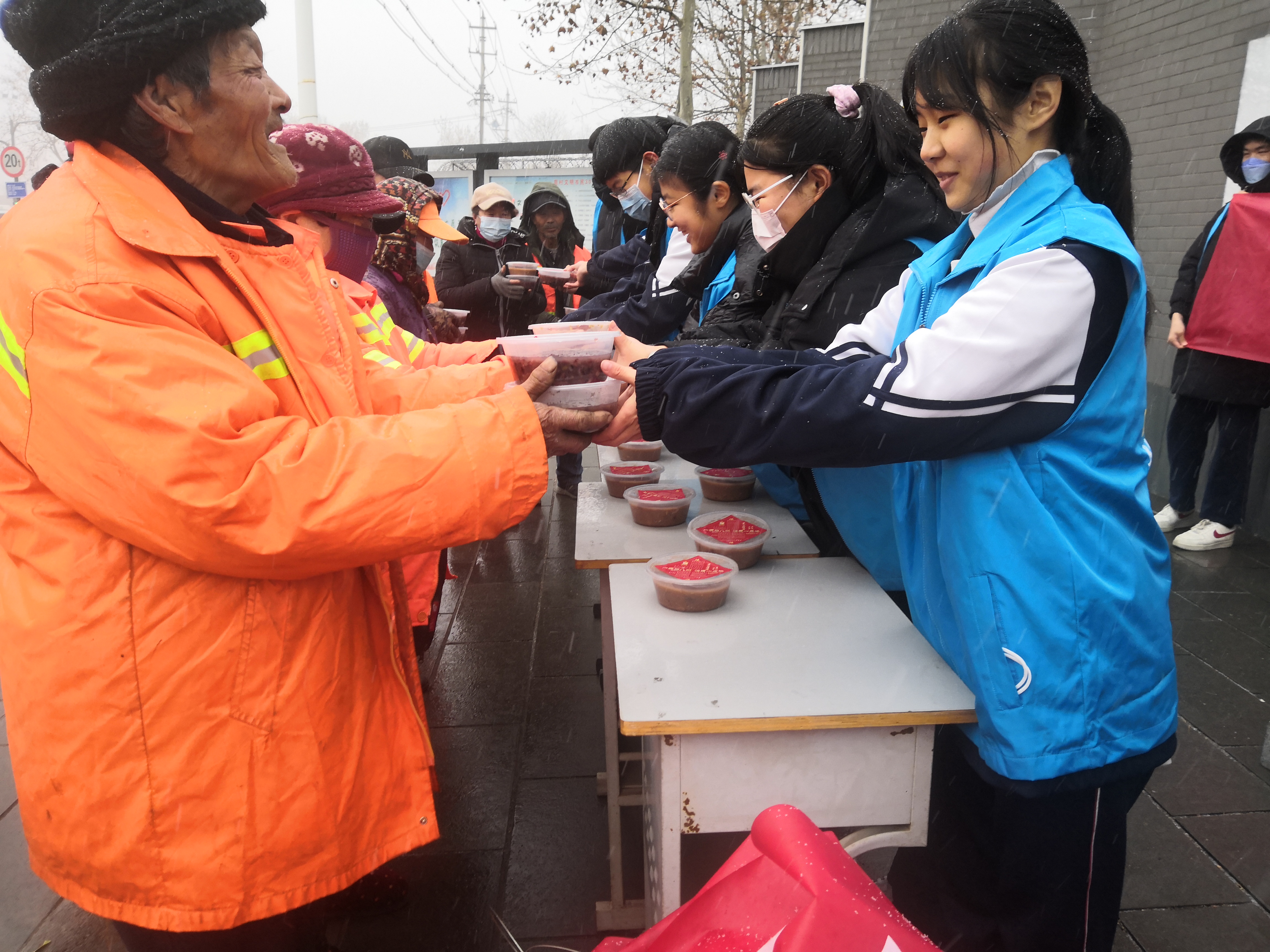活动当天,周村区社会组织联谊会九家团体的100余名公益志愿者,通过分布在全城的20个爱心驿站,与周村区相关单位的负责人一起,向园林工人、环卫工人、在岗交警、值勤志愿者、福利院老人……免费发放了2000份爱心腊八粥。请他们喝一碗福粥,为城市送去温暖。