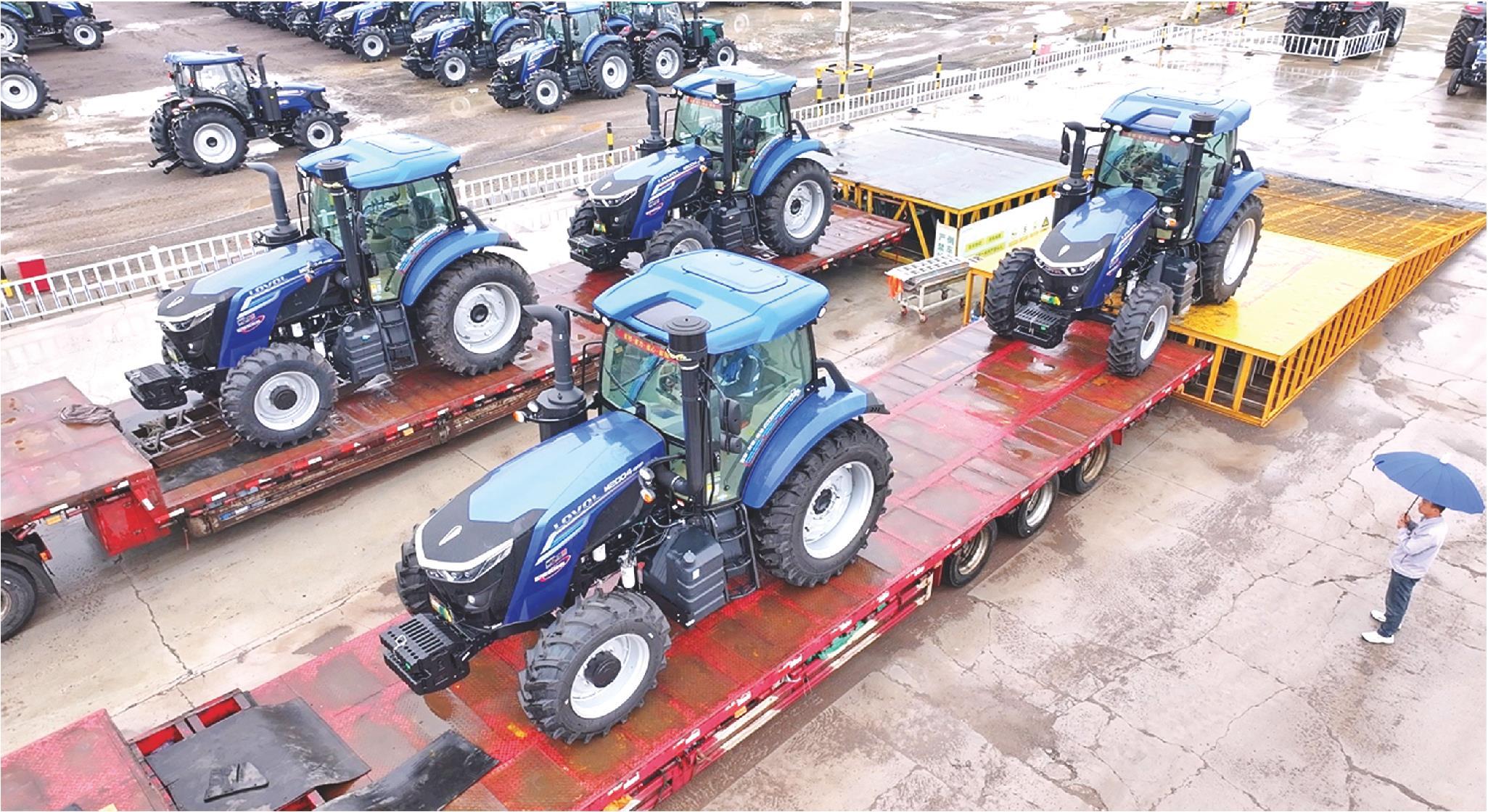10月10日,雷沃四驱大马力拖拉机装车发运。(记者 张蓓 通讯员 高嵩)