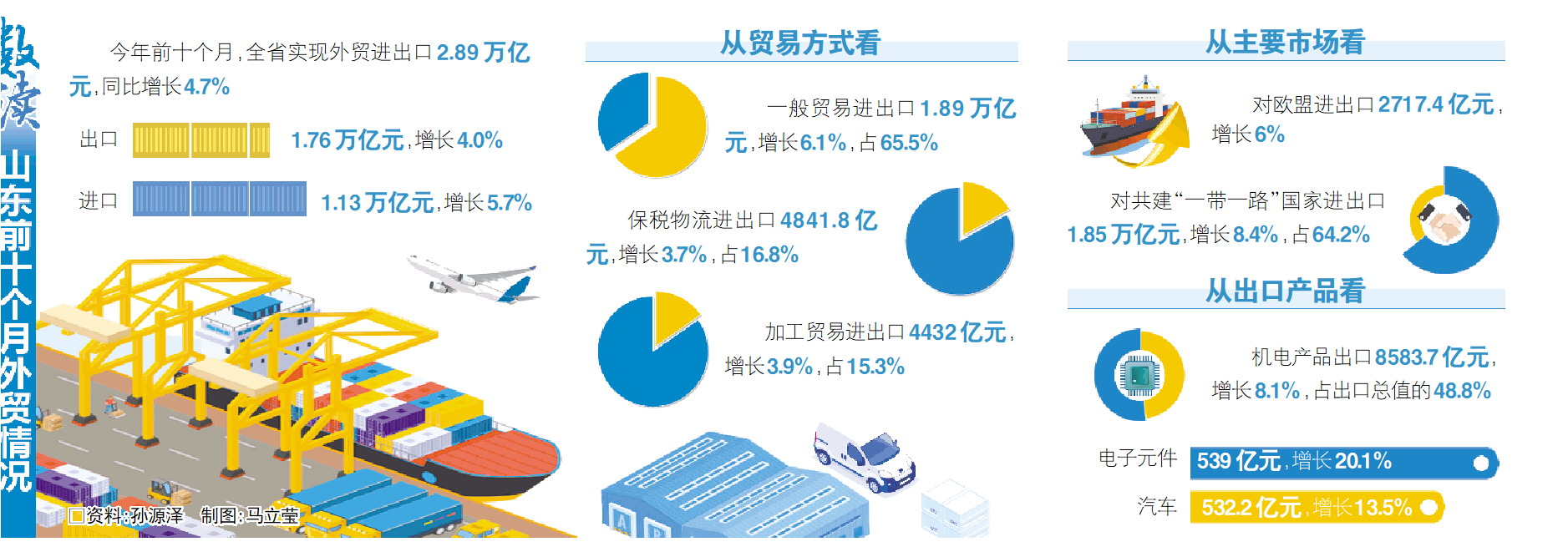 实现进出口2.89万亿元,同比增长4.7%,增速高于全国平均水平1.1个百分点……山东外贸交出前10个月成绩单。