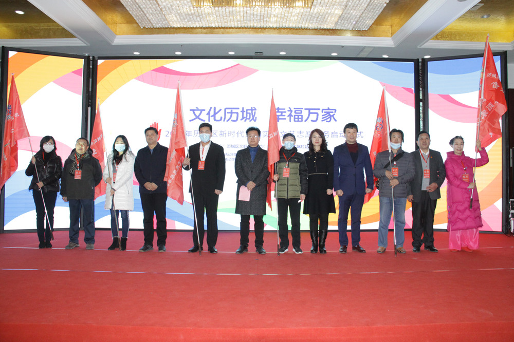 来自历城区文学、书法、美术、摄影、曲艺、音乐舞蹈等专业的文艺家代表分别接过了历城区作家、书法家、美术家、摄影家、曲艺家、音乐舞蹈家文艺志愿者分队队旗,开启了他们庄严而神圣的文艺志愿服务使命,用文艺志愿服务温暖万家。