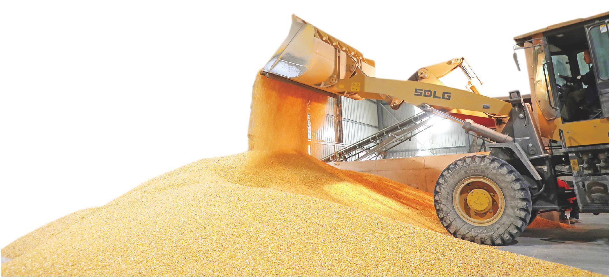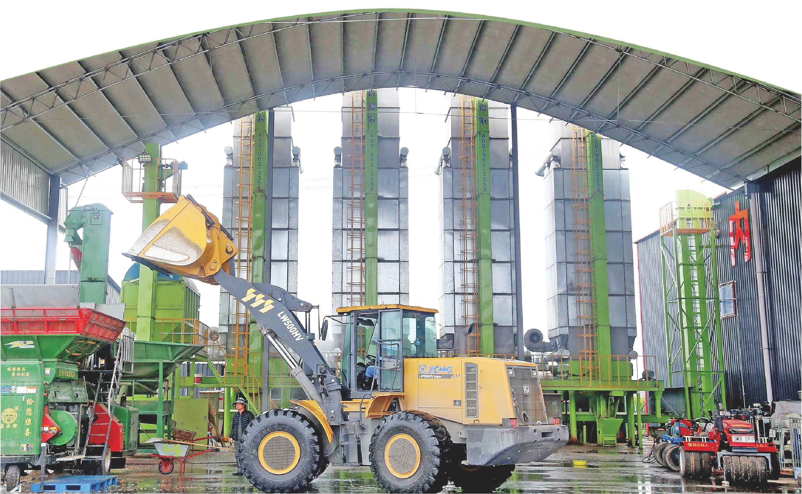 10月10日,在滨州市滨城区杨柳雪镇一处粮食烘干服务点,工作人员驾驶机械将玉米送入粮食烘干设备进行烘干。(通讯员 初宝瑞)