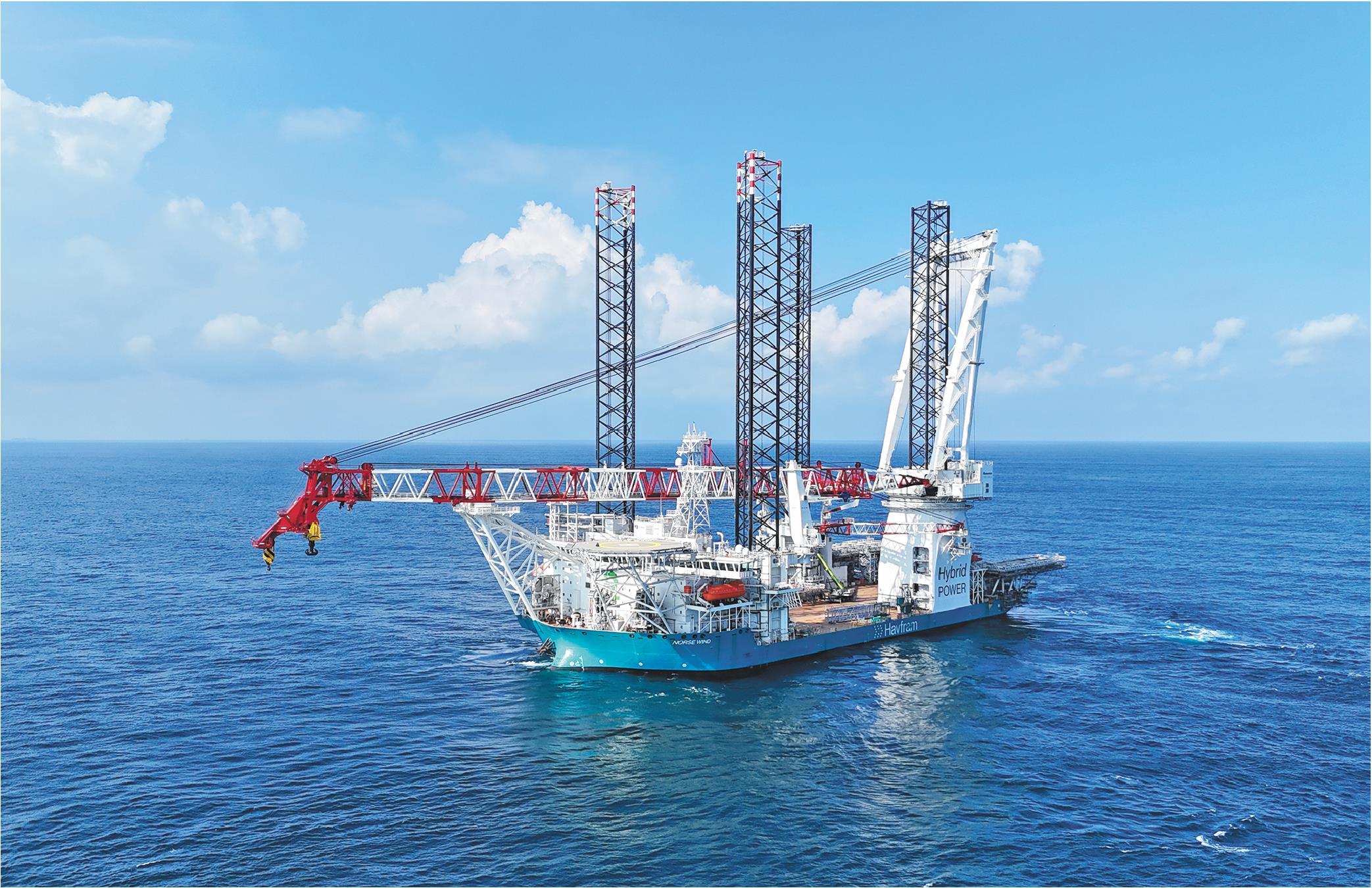 近日,中集集团旗下中集来福士为比利时海洋工程领域企业德米建造的Norse Wind风电安装船在烟台交付(上图)。