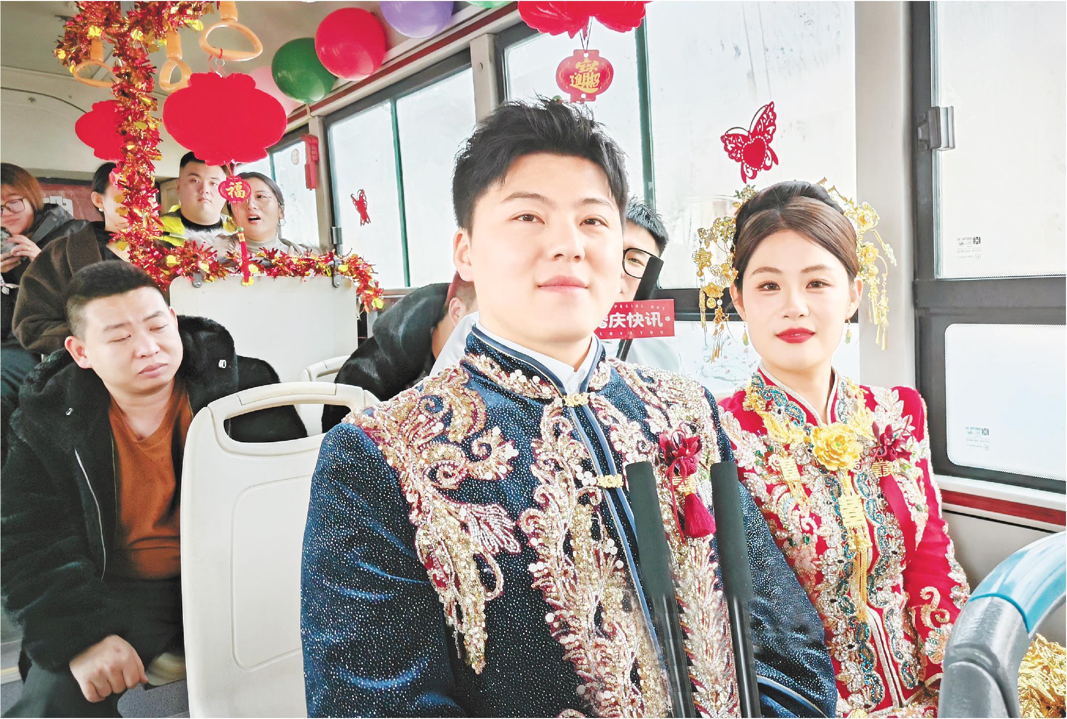“城乡公交车的性价比非常高!”朱喜峰表示,“它不仅能一次性容纳我们所有的至亲好友,让大家共同见证、全程参与这段最重要的旅程,避免了车队分散、沟通不便的麻烦。更重要的是它非常环保,这与我们想办一场简约、有意义、不增添负担的婚礼理念完美契合。”皮长青笑着说:“让每一位家人朋友都坐在同一辆车里,大家说说笑笑,一路欢歌笑语,这种团聚和热闹,才是我们心中出嫁迎娶最珍贵的仪式感。”