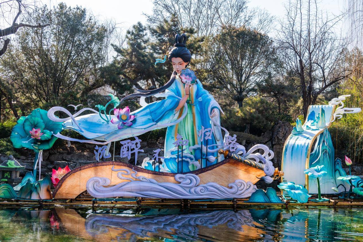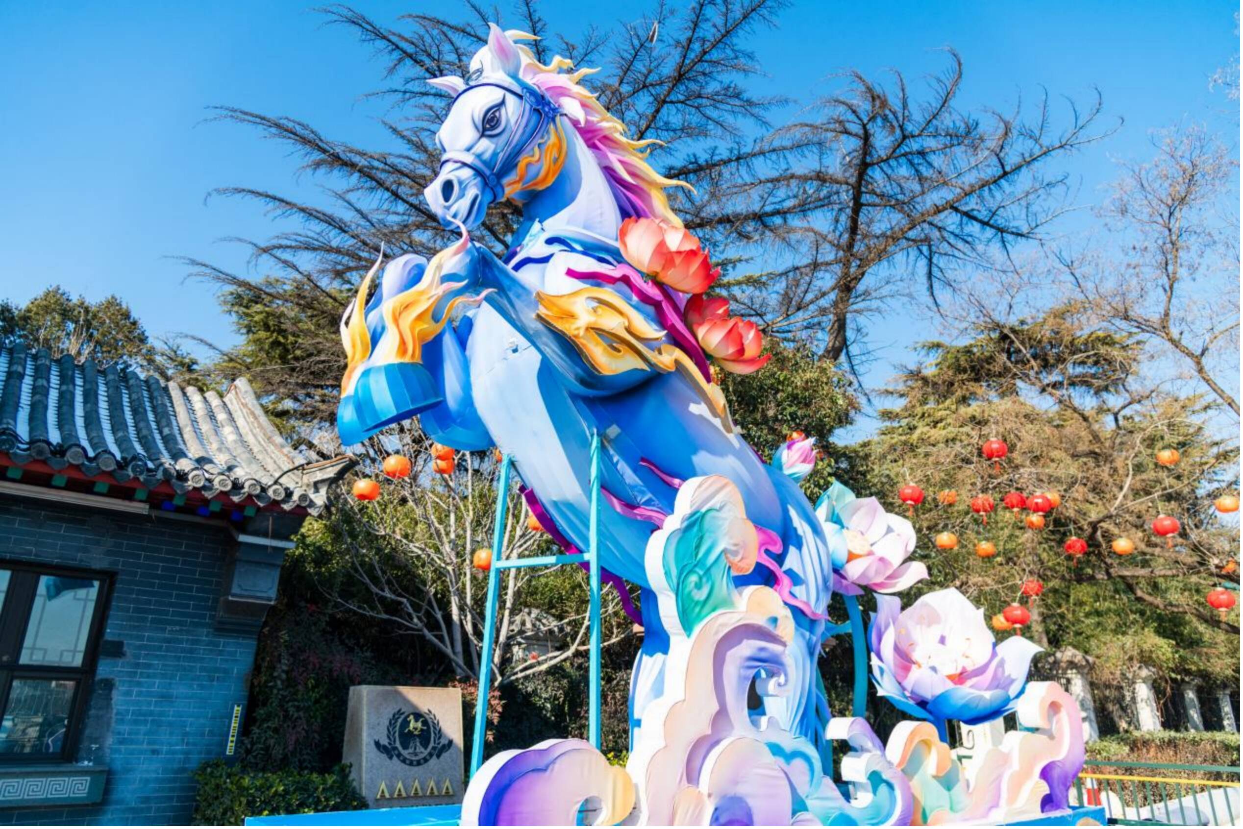 在设计上,本届灯会秉持“老技艺新表达”的理念,深挖泉城文脉与马年寓意,各展区特色鲜明:趵突泉巧妙融合瑞马贺岁与文人风骨,五龙潭以“古潭新韵”勾勒清幽秘境,大明湖延续“湖畔雨荷”IP打造鲜活场景,护城河以游船赏灯解锁独特水上视角。