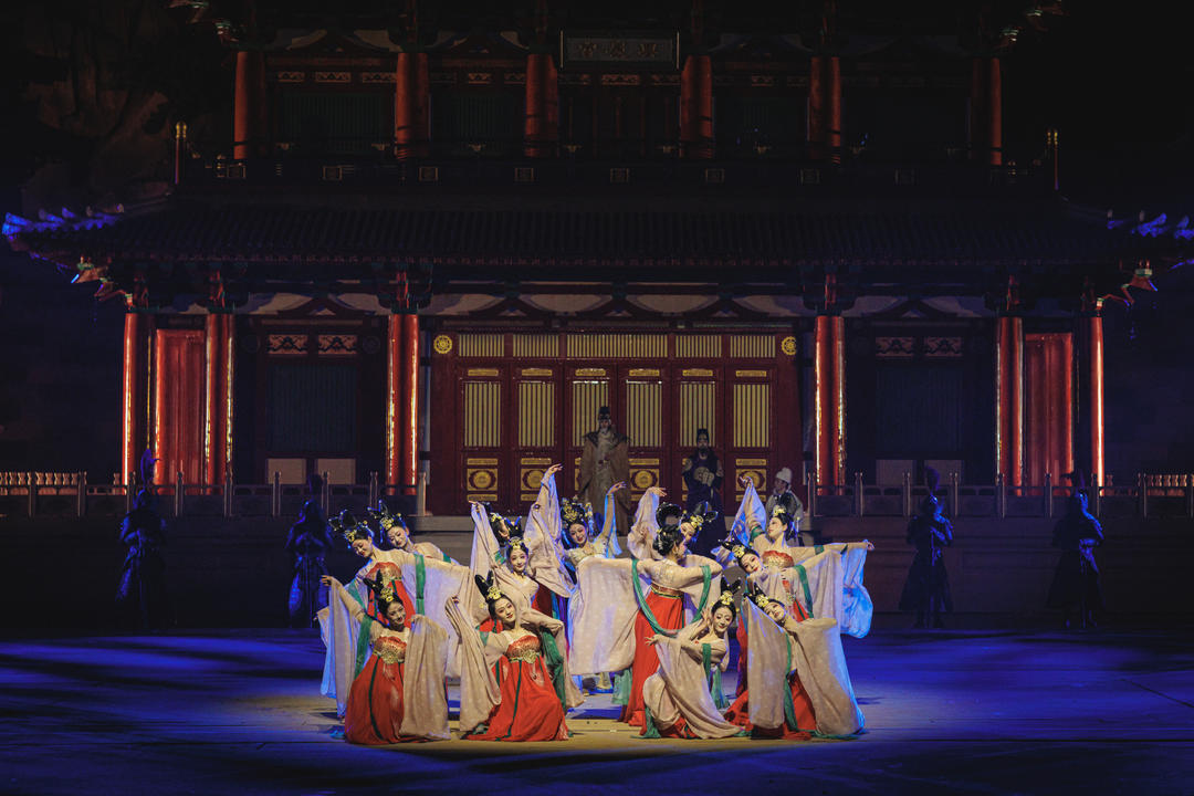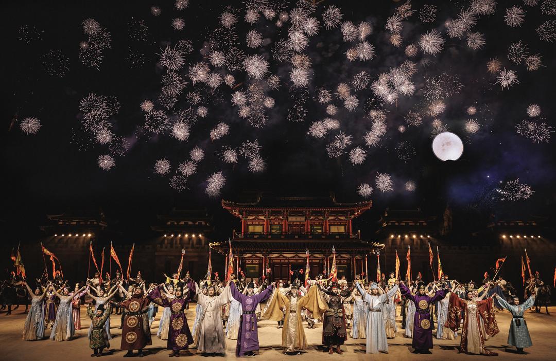 厚植精神价值,以琅琊之魂激发精神的震颤。《国士·捍山河》紧扣“国士精神”主题,将散落在琅琊历史长河中的忠、勇、仁、义、智等品格,凝练为鲜活可感的戏剧形象,力图展现这片土地所孕育的“关乎家国、系于山河”的风骨与担当,唤起当代观众的情感共鸣与文化自豪。剧中人物涵盖唐玄宗、杨玉环、高力士、颜真卿、颜杲卿、安禄山等真实历史人物,通过多重视角立体塑造“国士”形象。这种深挖在地文化精神内核的创作路径,有效避免了文旅演艺产品的同质化,进一步强化了琅琊古城独特的文化辨识度。