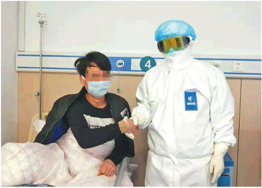 4床患者小陈,得知即将治愈出院的消息,激动地给病友传授经验:“听医生的,好好配合,好得更快!”整个病房的氛围也轻松起来。
