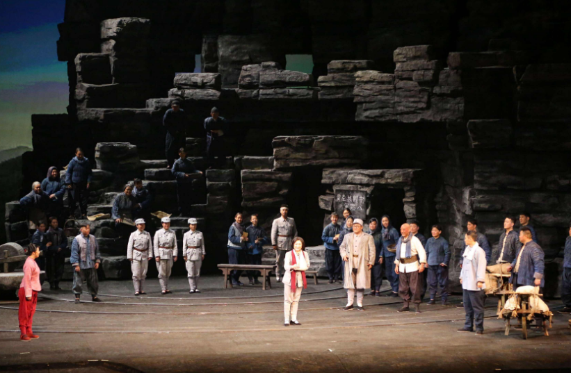 歌剧《沂蒙山》在山东省滨州保利剧院上演。演出现场,气势恢宏的舞台、激奋人心的唱词、经典大气的曲调、情感真挚的表演和艺术精品的气质扑面而来。随着剧情的不断深入,观众知晓了炮火纷飞的战争年代,沂蒙山革命老区党政军民水乳交融、生死与共的革命历史,欣赏到了将民族乐器竹笛、唢呐、琵琶、坠琴等融入伴奏乐队,完美演奏出具有浓郁山东特色的优美旋律。沂蒙山水、沂蒙精神、沂蒙百姓的感人事迹在歌声中汇聚升华,将全剧情感推向高潮。 歌剧《沂蒙山》由山东省委宣传部、省文化和旅游厅、临沂市委、临沂市政府联合出品,山东歌舞剧院创排。作为山东省创作推出的一部红色题材文艺作品,民族歌剧《沂蒙山》无论是创作模式、实施机制,还是主题立意、艺术呈现,都呈现出自身的鲜明特色。