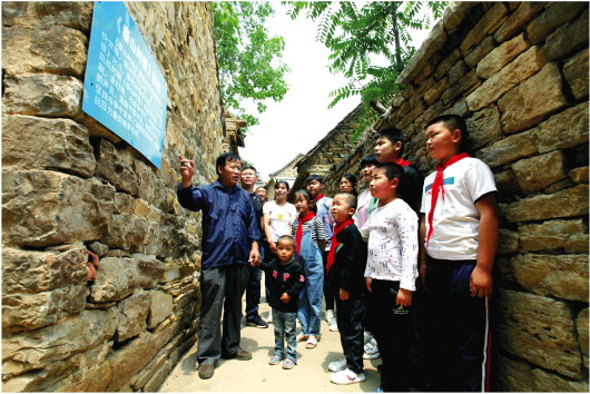有了想法,老范天天在村里转悠,专门找村里上了岁数的老人聊天听故事。越聊老范心里就越亮堂:原来自己生长的这个默默无闻的村子竟然有这么多丰富的历史和故事。他了解到村里除了有保存完整的4公里长的齐长城,还有著名的关口黄石关遗址,有孟姜女墓,还有战国古道,汉代铁釜、陶器等等。更重要的是,上王庄村还是一个有光辉历史的红色抗日根据地。老范像是挖到了一座宝库,开始了他在村子里实施的“文化之旅”。