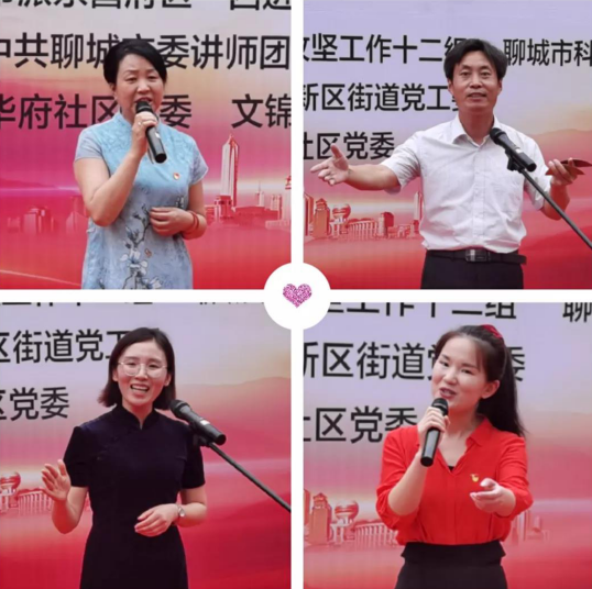 党恩泽四方,党情深似海。报告会以“百姓宣讲+理论宣讲”的形式,通过讲故事、说快书、讲理论、唱红歌等群众喜闻乐见的形式,引导社区党员干部和居民重温党的光辉历程,歌颂党的丰功伟绩,宣传党的辉煌成就,进一步增强社区党组织的凝聚力和战斗力,激励大家坚定理想信念、增强使命担当,同心同德为社区发展作贡献。报告会在付跃芳、葛政华演唱的《最美的歌唱给妈妈》歌声中拉开序幕,聊城市委讲师团副团长、教授杨士武的理论宣讲深入浅出、通俗易懂,聊城六中詹春芳、聊城开发区广平中学刁兴东、聊城高新区韩集乡石倩、茌平区振兴街道办事处的王云等百姓宣讲情真意切、真实感人。最后,报告会在《我和我的祖国》歌声中圆满结束。整场报告高潮迭起、掌声不断。