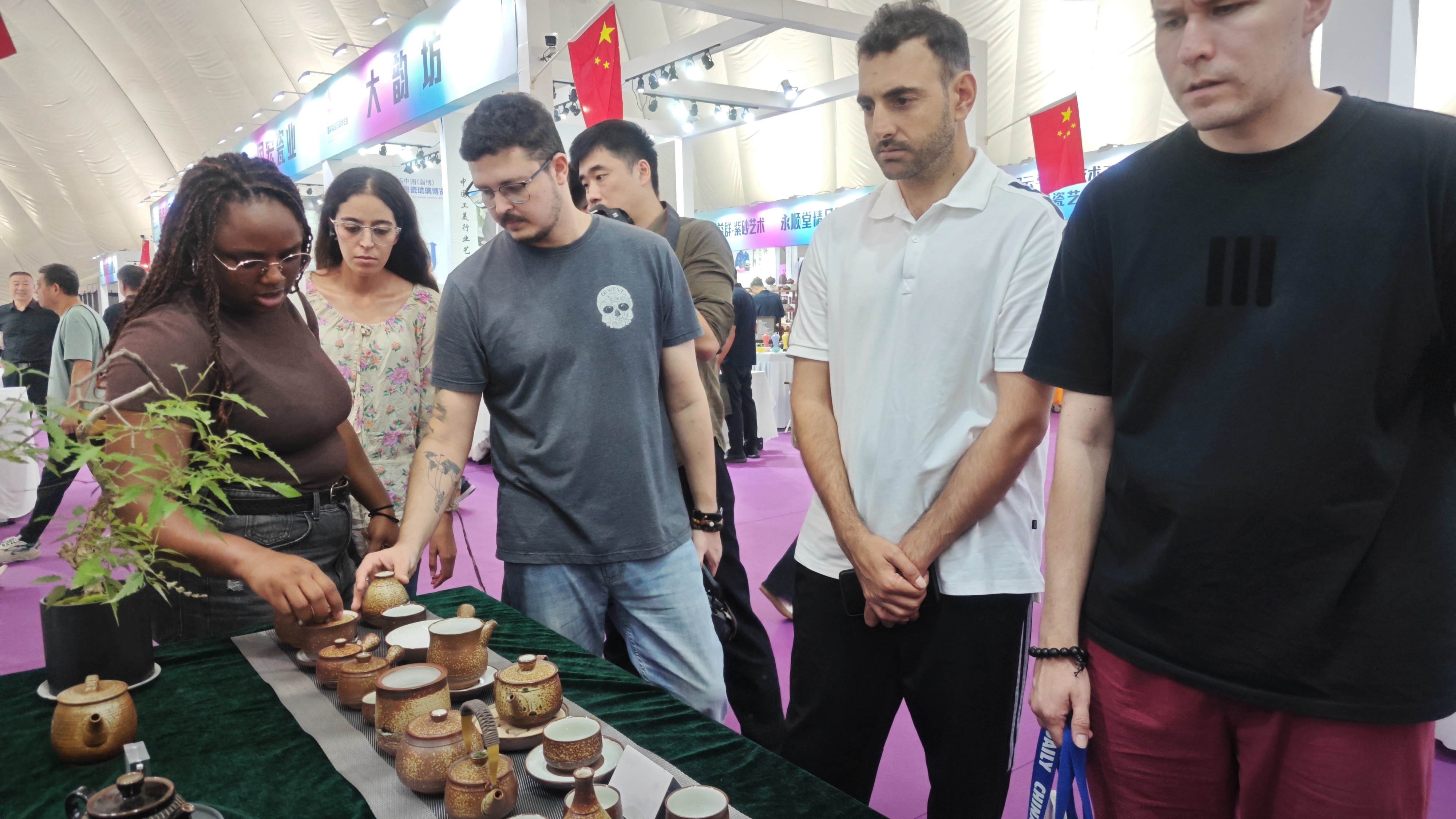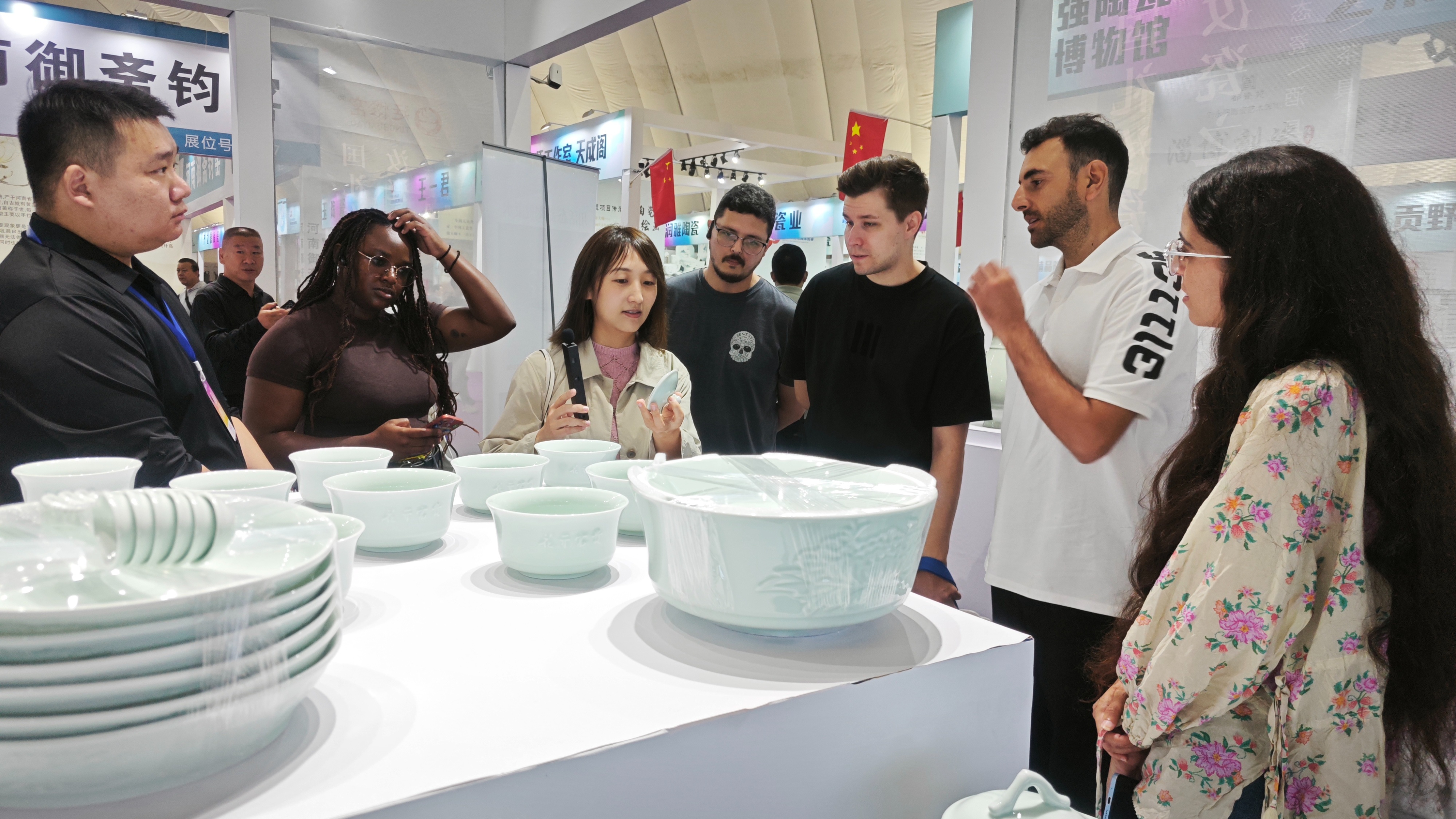 随后,外国网红达人们又参观了硅元陶瓷、华光陶瓷、西冶工坊等知名展厅。硅元陶瓷的高石英瓷细腻温润,兼具科技感与实用性;华光陶瓷的釉彩设计融合现代美学,件件皆是“可使用的艺术品”;西冶工坊的琉璃作品则传承古法技艺,造型灵动充满创意。巴基斯坦文旅达人阿力拿起一件琉璃吊坠仔细端详,不禁感叹:“这些作品不仅漂亮,更能感受到背后的文化和匠心,太吸引了!”