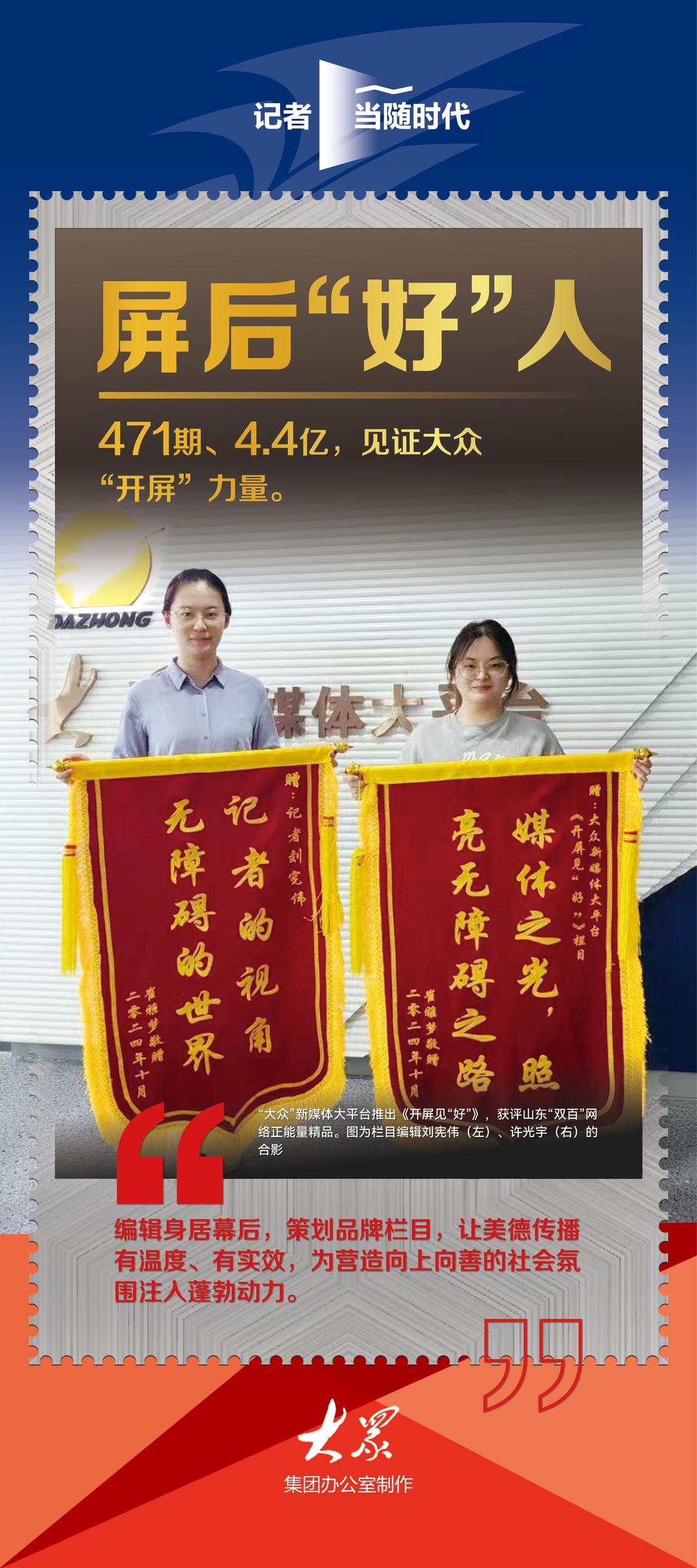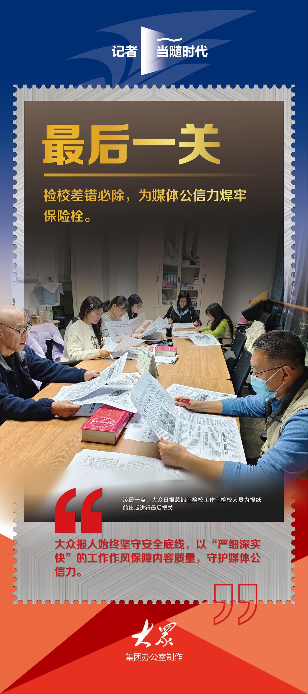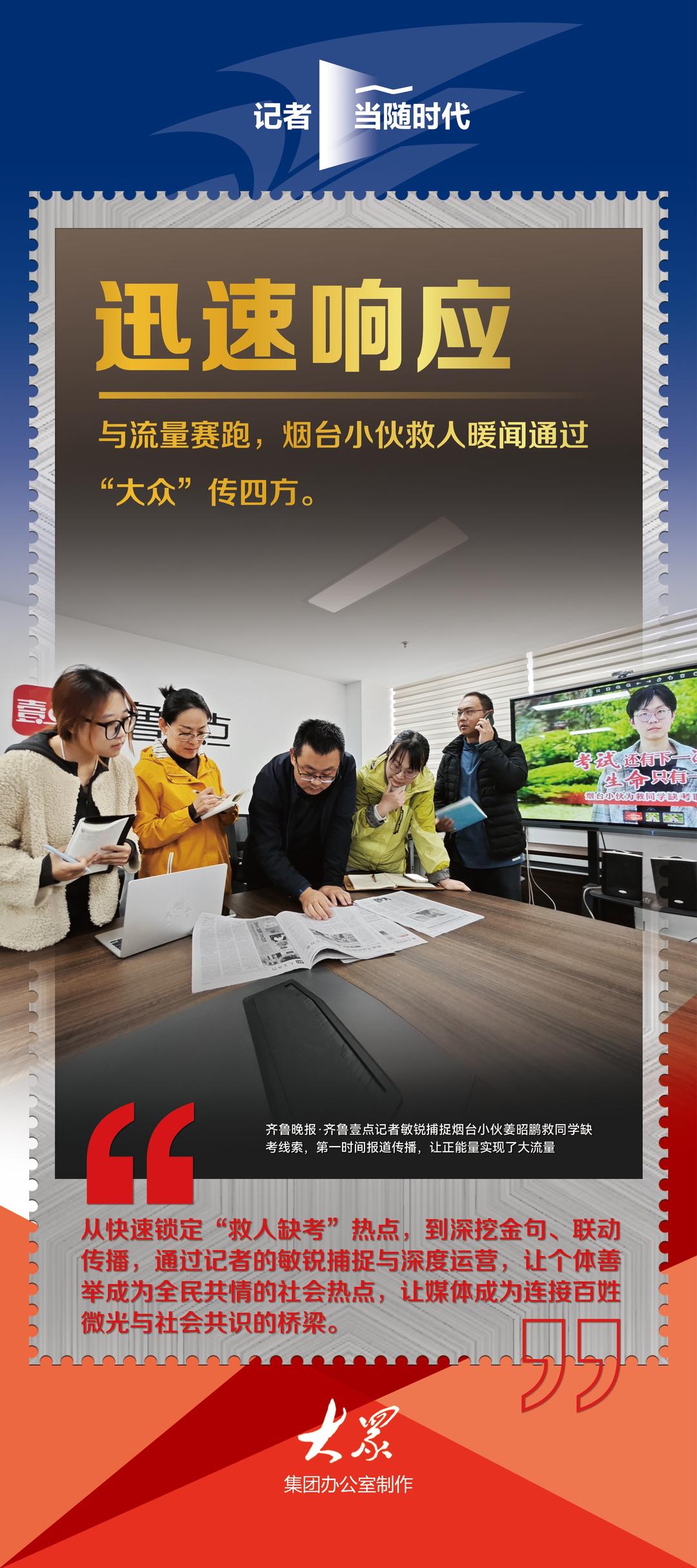 记者当随时代。从“铅与火”“光与电” 到“数与网”“云与端”,大众报人锚定变革浪潮,始终与时代同呼吸、共命运。以每一帧镜头记录发展新貌,以每一篇报道回应民生关切,以每一次变革紧扣时代节拍,以每一次出发传递奋进力量。大众报人扛牢初心使命,始终做党的政策主张的传播者、时代风云的记录者、社会进步的推动者、公平正义的守望者。主流媒体系统性变革的号角愈发响亮,强学习、深调研、勇突破,请看大众报人的答卷。(记者 贺翔)