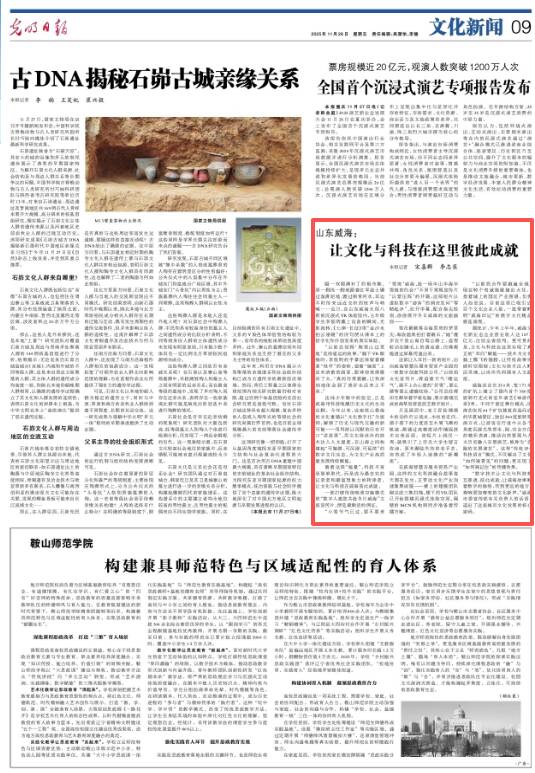 11月28日出版的《光明日报》在第9版以《山东威海:让文化与科技在这里彼此成就》为题,点赞威海数字技术让文化与科技相互渗透、彼此成就,让威海故事顺着数字的脉络,传到更远的地方,奏响更加嘹亮的文化新声。