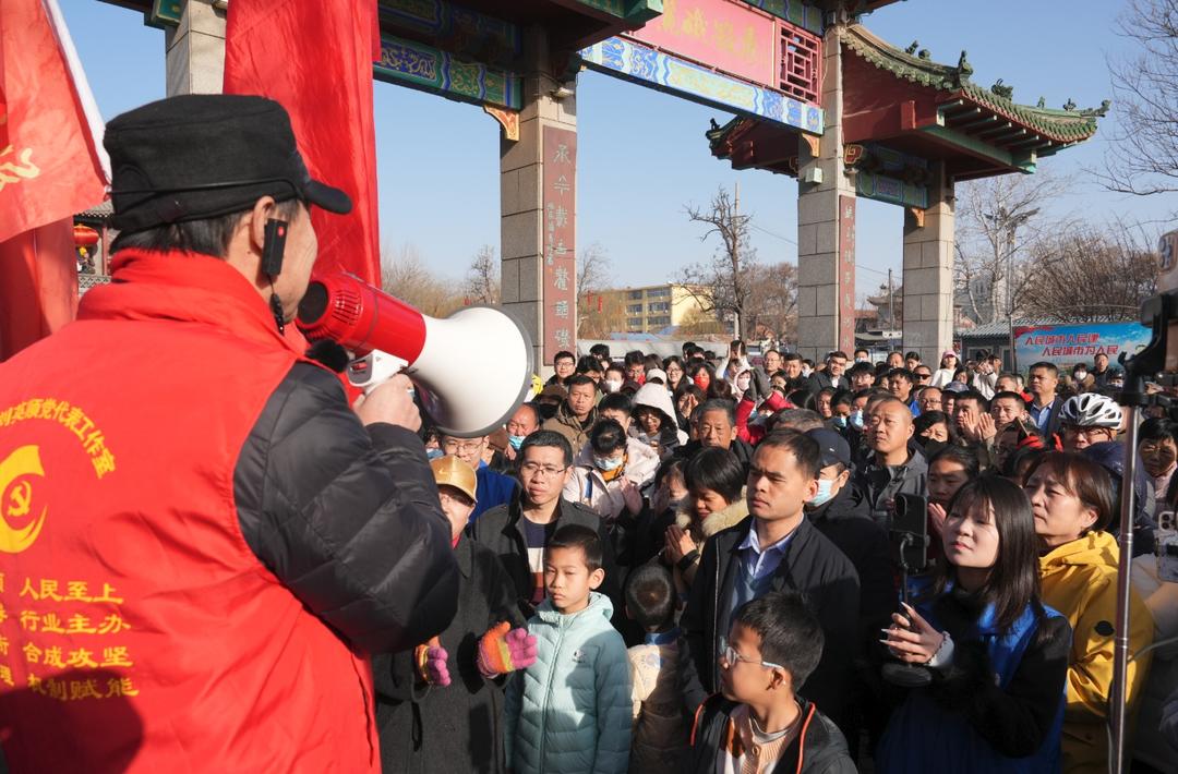 2月20日,大年初四清晨,临清市鳌头矶广场前,距离约定的出发时间还有半个多小时,广场上已经聚集起黑压压的人群。“各位老少爷们、远道而来的客人们,咱们今年的胡同游出发喽!”临清胡同游的发起人、64岁的本地居民刘英顺走在队伍最前头。身后上千人的队伍宛如长龙,蜿蜒进入中洲古城街巷之中。