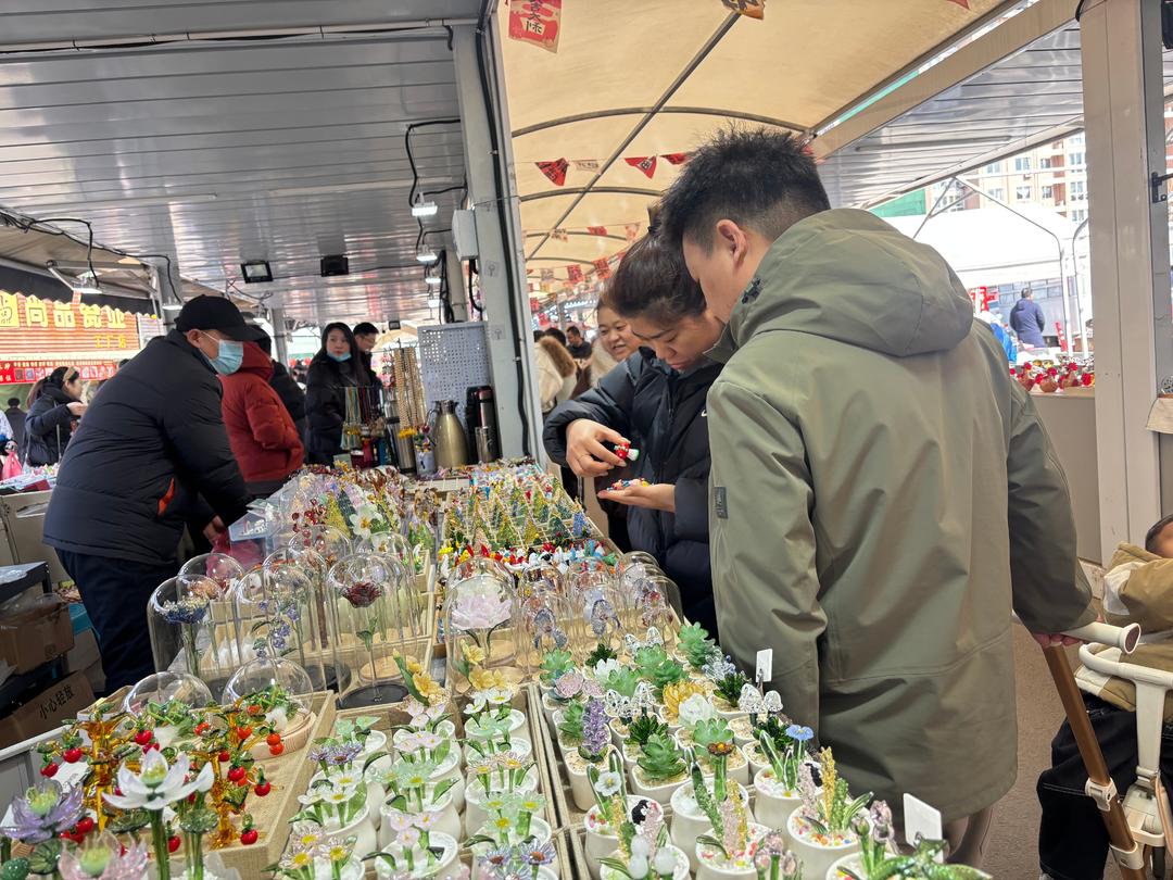 一旁带孩子来赶集的市民也忍不住夸赞:“比去超市有意思多了,孩子盯着陶琉茶具挪不动脚,既能买年货,还能感受陶琉文化,太值了。”