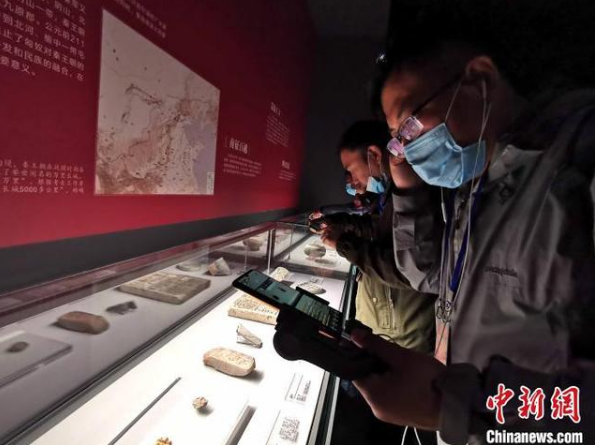 现场展出的文物中有一件迄今为止中国发现的最早的家信实物——黑夫木牍。据策展方工作人员蔡航介绍,该家信木牍共计527字,也叫“云梦秦简家信木牍”,是秦国士兵黑夫与惊在随秦军统一楚国战争时,寄给家里人的书信,保存得相对完整。“信中表达的含义大致是希望家人寄送衣服和钱财,同时问候家人要保重身体。”