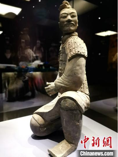 跪射俑、中级铠甲军吏俑、铠甲武士俑等近十件兵马俑也亮相本次展览。 赵晓 摄