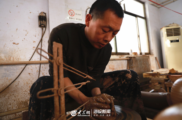 一早,记者来到梁子黑陶文化园,从业20年的黑陶成型大师孙连伟正在专心进行一件陶器的拉胚制作。“陶器拉胚是黑陶制作工艺中重要的一个环节,对泥土的质量、环境温度、调和比例都有着严苛的要求,在材料上我们选用运河红胶泥,在拉胚过程中要保持全神贯注,因为器型的好坏决定了黑陶的美感。”孙连伟说。