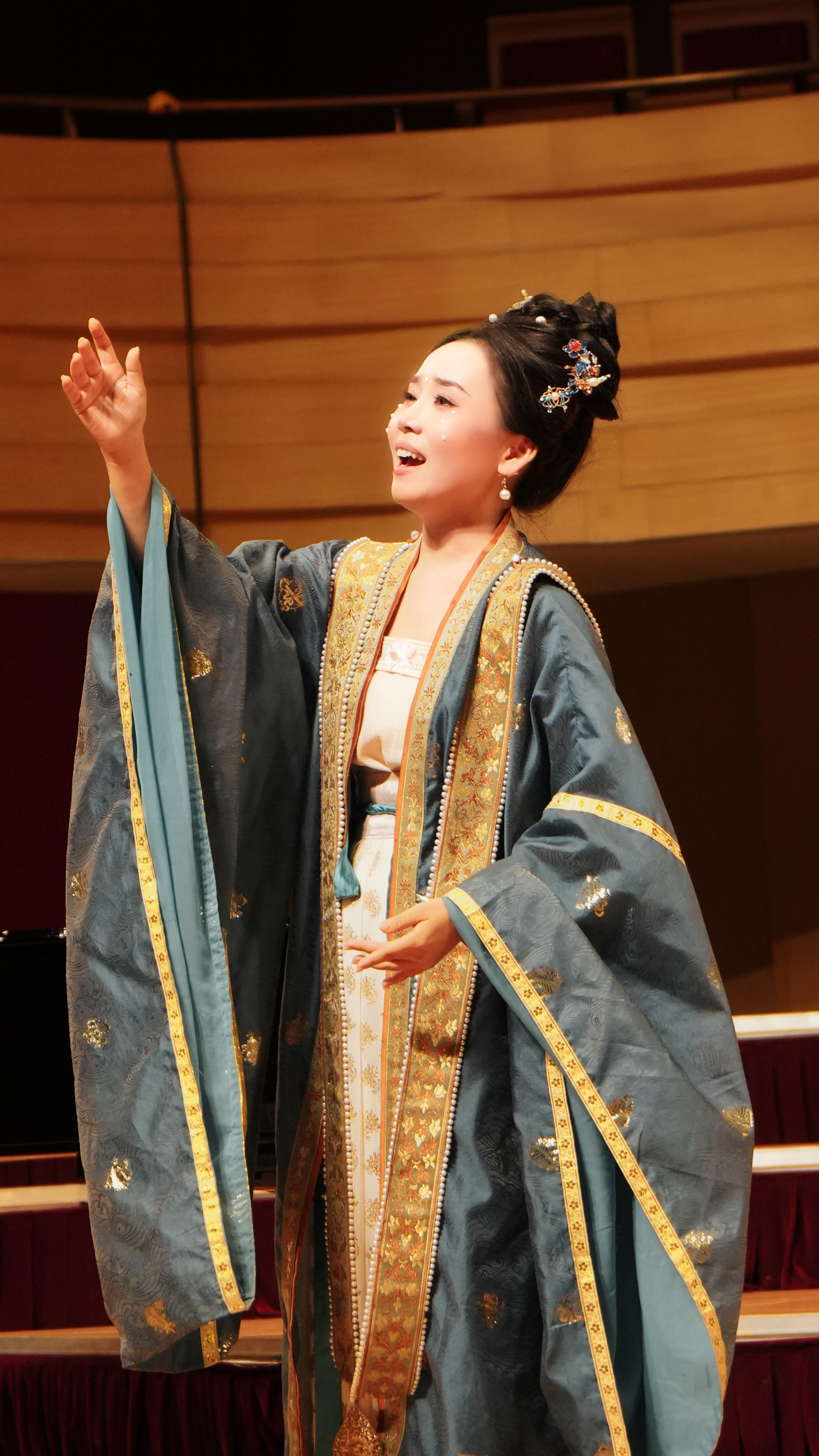 10月17日晚,古诗词艺术歌曲吴睿睿独唱音乐会在保利•山东省会大剧院举行。钢琴伴奏下,身着素雅汉服的歌唱家引领观众一同放歌——“问君能有几多愁,恰似一江春水向东流……”音乐厅里,诗意流转,歌声悠扬,每个人完成了一次穿越古今的听觉漫游。西方音乐艺术与中国传统文化产生了美妙的化学反应,既展现了传统文化的深厚底蕴,也拓宽了美声唱法的表达边界,为观众带来兼具审美价值与文化意义的艺术体验。