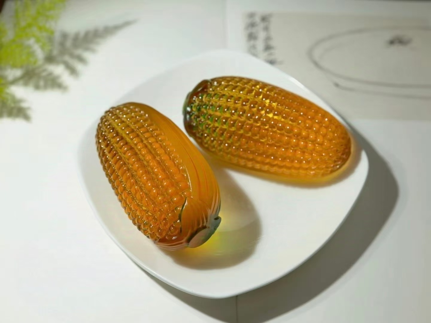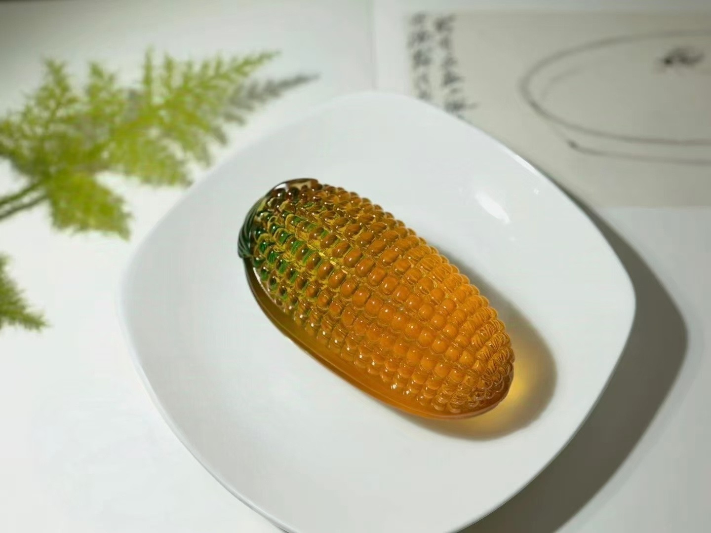 琉璃艺术品以各种颜色的人造水晶为原料,经高温烧制而成,其品质晶莹剔透、光彩夺目。请欣赏山东省淄博市淄川区的琉璃作品——《“玉”见》。