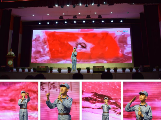 在层层推荐选拔中脱颖而出的10名成人宣讲员和7名学生宣讲员深情讲述了一个个震撼人心的红色故事。有大义凛然、视死如归的吴亚屋,有舍身保护人民群众生命和财产安全的冯思广,更有默默奉献的越战老兵步同良……“‘桃花红雨英雄血,碧海丹霞志士心。今日神州看奋起,陵园千古慰忠魂!’习近平总书记说,‘共和国是红色的,不能淡化这个颜色!’红色是什么?是革命先烈抛头颅洒热血的牺牲精神,是我们每个人血液中流淌的爱国精神,是你不怕困难努力前行的步伐,是你报效祖国仰望国旗的样子!”17名宣讲员或抑扬顿挫、慷慨激昂,或绘声绘色、引人入胜,或深情款款、娓娓道来,一个个生动的故事,一句句激昂的声音,一幕幕入情入境的表演,深深吸引了在场的每一位观众。
