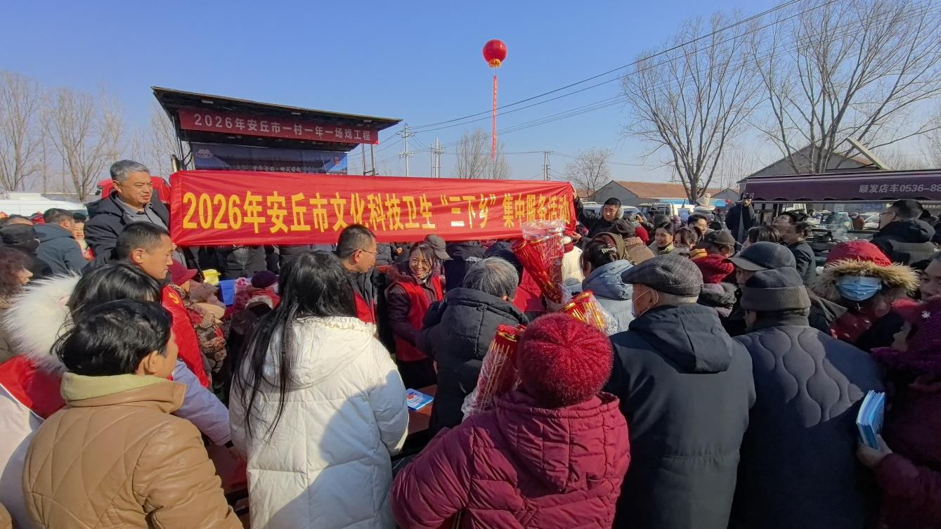 同时,安丘市文化科技卫生“三下乡”集中服务活动也来到现场。文旅、司法、卫生等部门及志愿者开展起科普宣传、安全普法、义诊服务,暖心举措贴近民心。书法家们泼墨挥毫,将一幅幅春联、一张张福字免费赠予群众,红纸黑字间流淌着新春的祝愿。
