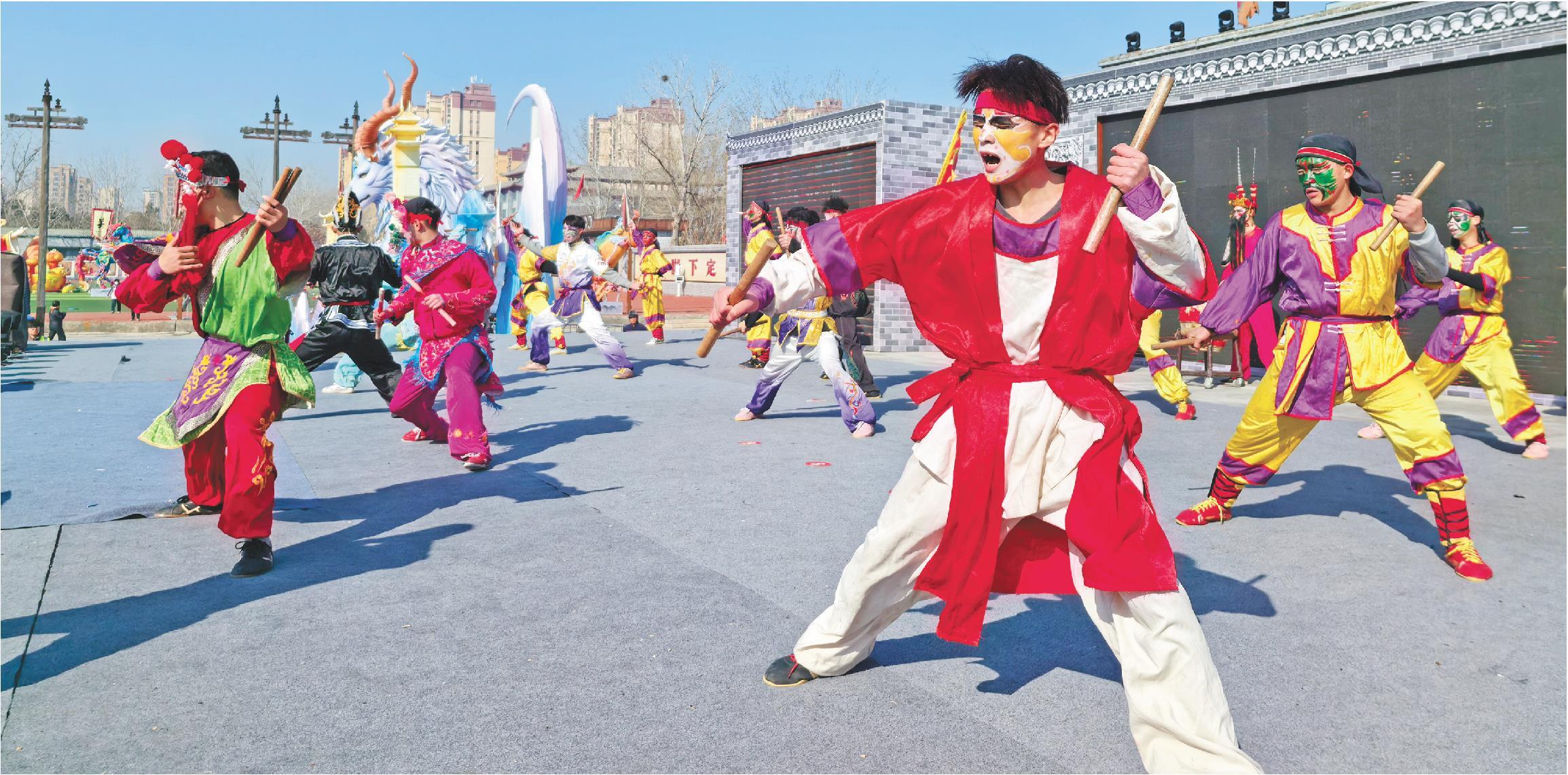 2月19日,在郓城水浒好汉城,精彩的文艺表演吸引众多游客。马年春节假期,八方游客齐聚水浒好汉城。白天实景大戏、非遗展演精彩纷呈,NPC互动趣味十足;夜间打铁花、灯海盛宴氛围感拉满。人潮涌动处,皆是年味与欢喜,演绎出春节该有的火爆模样。(记者 王兆锋)