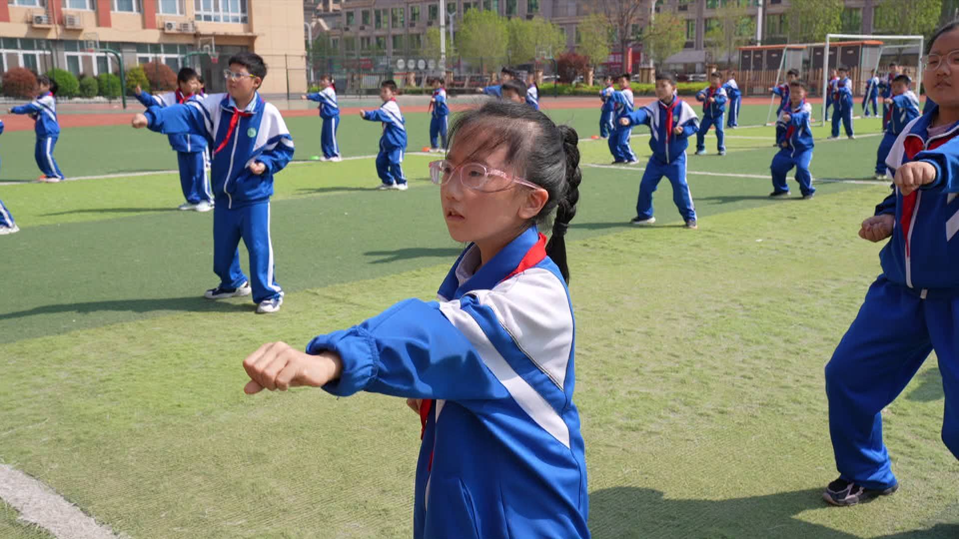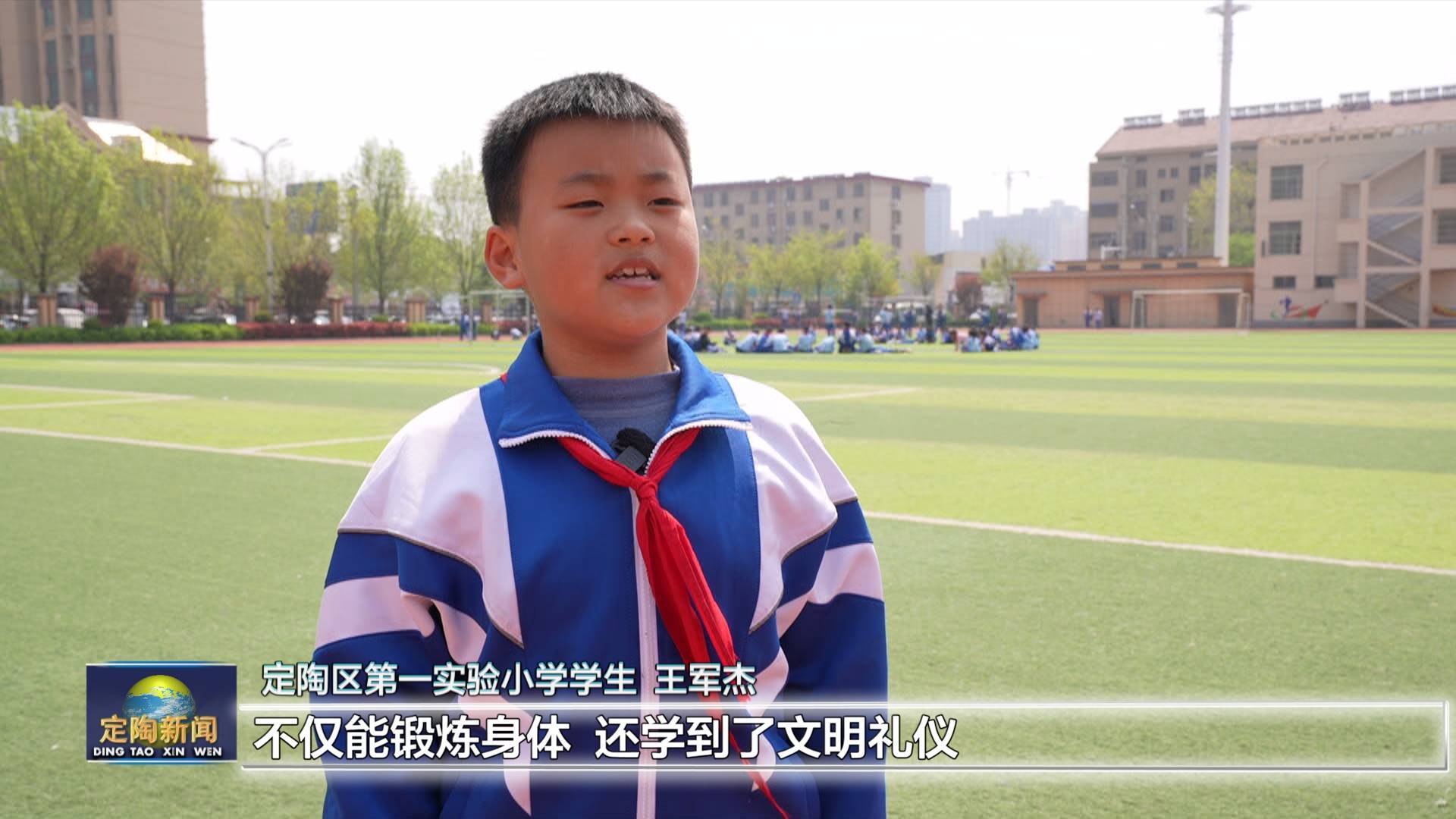 定陶区第一实验小学学生 王军杰:现在我们又新学了弟子规武术操,感觉大课间更有意思了,我们跟着节奏动起来,不仅能锻炼身体,还学到了文明礼仪,感觉自己整个人都特别有精神,现在我每天都特别期待大课间。