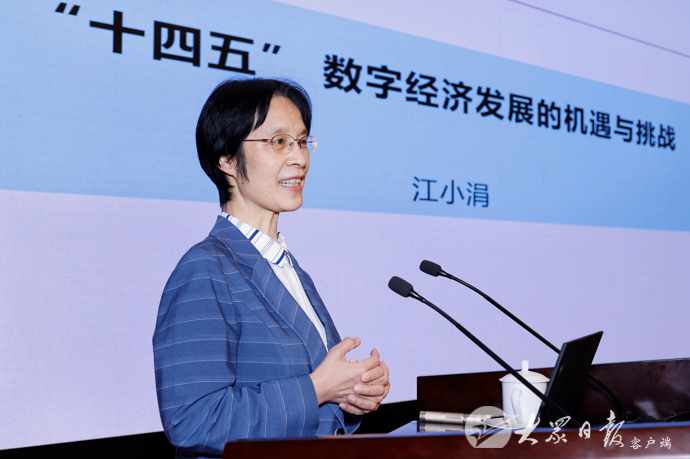 全国人大社会建设委员会副主任委员、中国行政管理学会会长、清华大学公共管理学院院长江小涓教授受邀作辅导报告。江小涓在报告中,围绕贯彻落实五中全会精神,结合理论与实践,介绍了我国数字经济发展情况,阐明了发展数字经济的重要性紧迫性,阐述了“十四五”时期数字经济发展的机遇和挑战,并为促进数字经济发展提出意见建议。