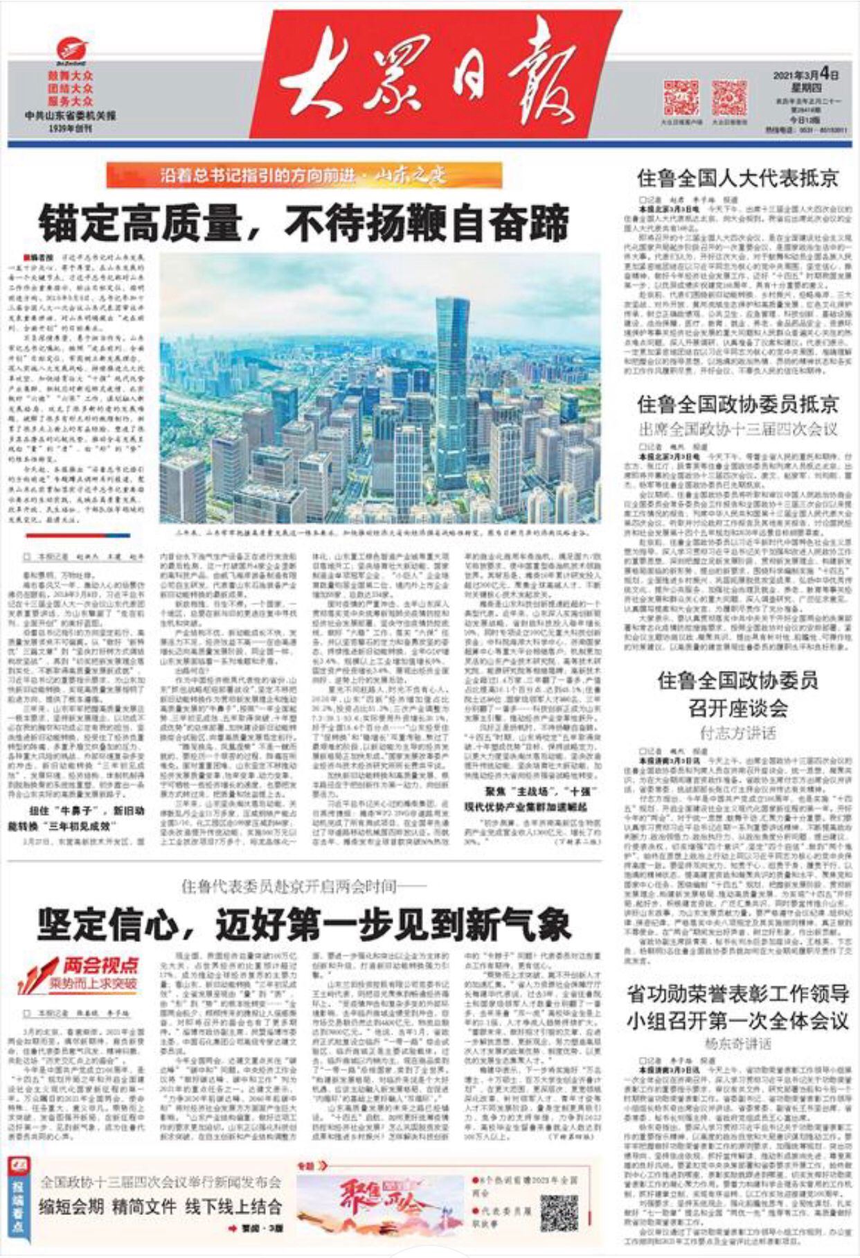 2018年3月8日,习近平总书记在十三届全国人大一次会议山东代表团发表重要讲话,为山东擘画了“走在前列、全面开创”的美好蓝图。