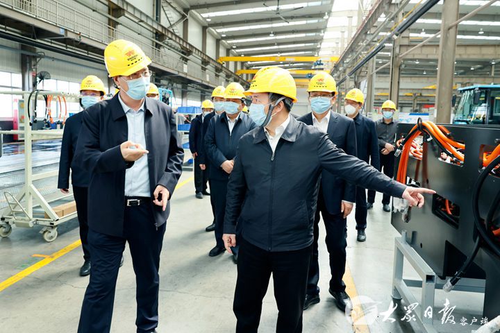 李干杰先后来到英轩重工有限公司、华晨(昌邑)纺织集团、山东浩信集团有限公司,认真听取企业疫情防控和生产经营汇报,深入车间、展销中心察看产品生产线,仔细询问订单生产、产品销售、企业效益、科技研发等情况,叮嘱企业做好常态化疫情防控措施,扩围加密核酸检测,守牢疫情防控底线;要不断加强创新,走智能化、高端化之路。在山东康利莱医疗器材有限公司,李干杰详细了解口罩、防护服等防疫物资生产和保供情况,强调各地要加强防疫物资储备,尤其是提高核酸检测、医疗收治能力,确保有备无患。