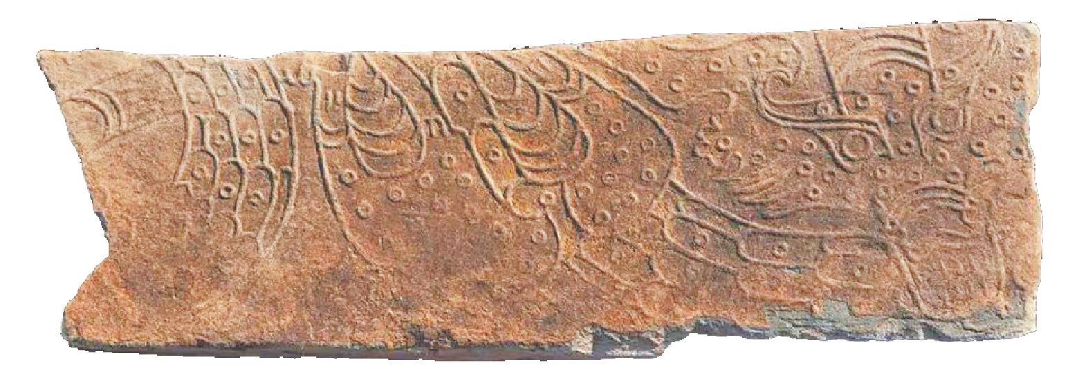 琅琊台遗址山顶建筑基址出土的龙纹踏步空心砖(局部)。