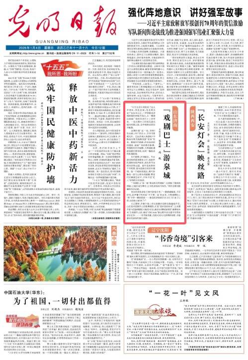 1月4日出版的《光明日报》在头版刊文《“戏剧巴士”游泉城》,点赞元旦期间齐鲁大地上的文旅融合创新实践遍地开花。