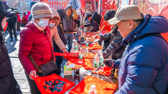 宣讲现场年味十足,喜庆春联翰墨飘香,热闹的市集氛围与亲切的理论宣讲相映成趣,处处洋溢着喜庆祥和的新春气息。