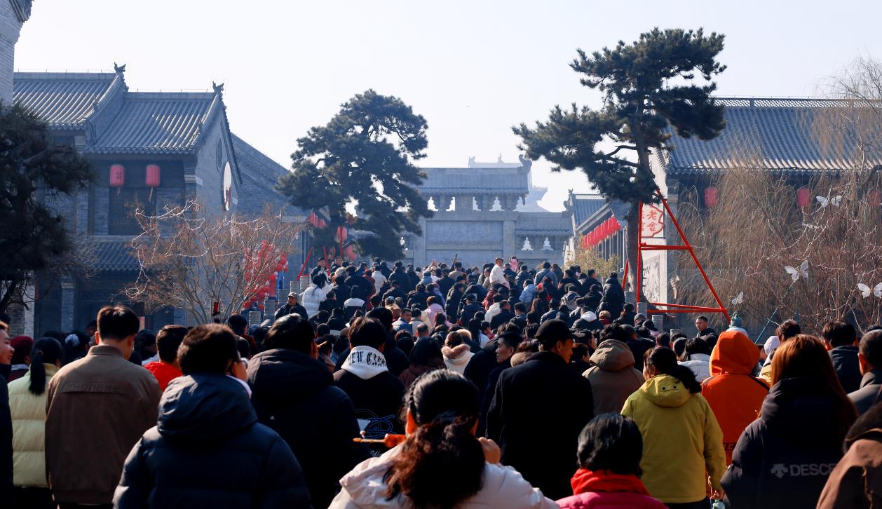 莒国古城游客摩肩接踵,人气爆棚。景区内武术、杂技、歌舞等表演轮番登场,武术表演刚劲有力,尽显传统功夫魅力;杂技演员惊险刺激的技艺引来阵阵喝彩;欢快喜庆的歌舞表演则洋溢着节日的热情。丰富多彩的节目让市民游客目不暇接,大家纷纷举起手机记录精彩瞬间,在热闹欢腾的氛围中感受红红火火的中国年。游客们漫步古街,猜灯谜、观汉服巡游,在光影交错中沉浸式感受传统文化与新春佳节交融的独特氛围。