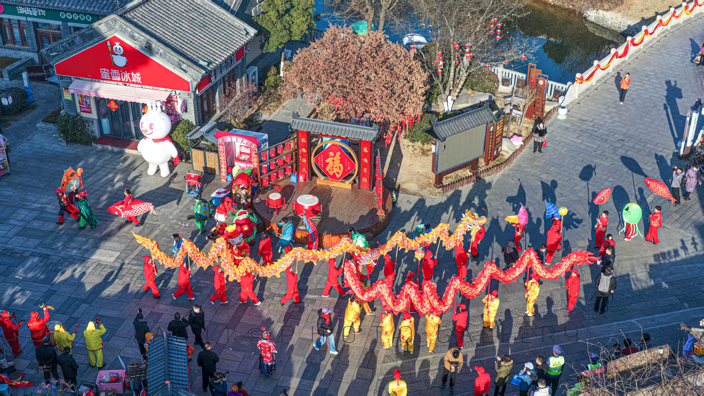 大年初一的东夷小镇已是人潮涌动,2026东夷小镇大庙会在喧天的锣鼓声中热闹开场。舞龙舞狮、划旱船、秧歌等民俗巡游依次亮相,为游客奉上一场沉浸式民俗嘉年华。庙会现场,黑陶、农民画绣等非遗文创产品琳琅满目,游客们不仅能选购心仪年礼,还能亲手体验剪窗花、拓印年画,在烟火气中感受传统文化的魅力。