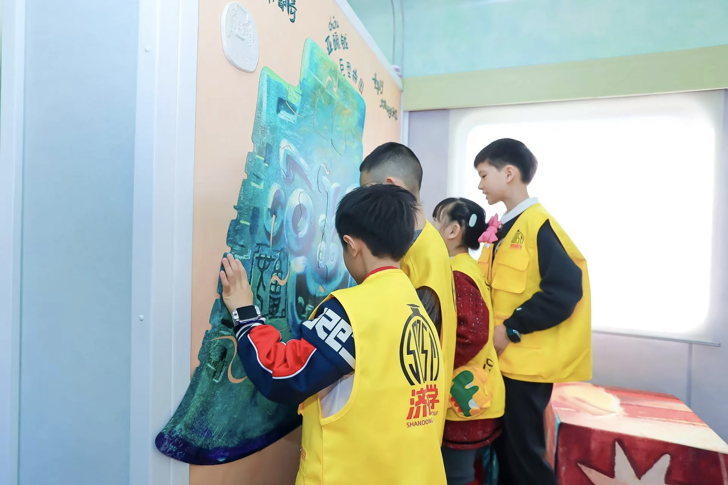 “列车上还集结了各大文博场馆的精美文创,游客可以选购商品,也能自制文物冰箱贴,或参与‘寻宝’互动,领取一份宝物册,到沿线博物馆打卡。”列车长刘效君介绍,“好客山东·齐鲁1号”文物研学主题旅游列车全程停靠7个站点,当天往返,通过有效串联、“活化”转化山东、河北两省重点文物资源,实现了车上车下文化互通,让“坐着火车去研学”成为文旅新时尚。