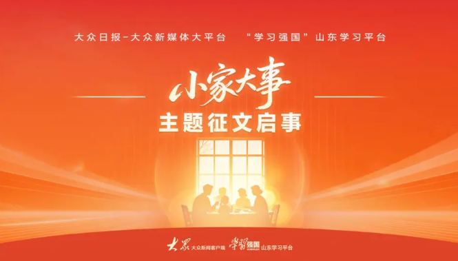 2026年,是中国共产党成立105周年,也是“十五五”开局之年,为充分展示党的十八大以来,党和国家事业发生历史性变革、取得历史性成就,人民群众不断增强的获得感、幸福感,尤其是齐鲁儿女在党的坚强领导下“小家”生活中发生的深刻变化,即日起,大众日报·大众新媒体大平台、“学习强国”山东学习平台联合启动《小家大事》主题征文活动。