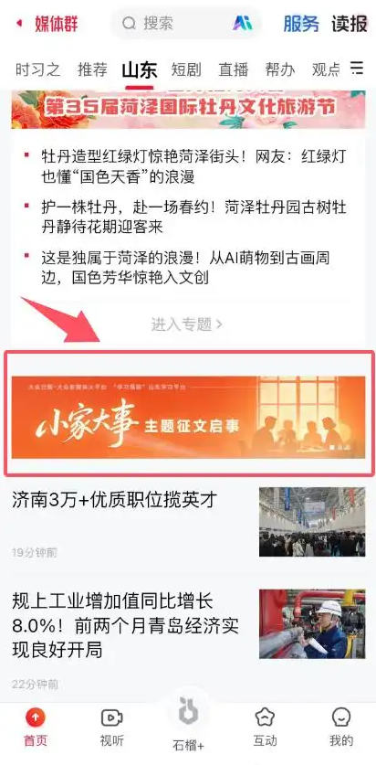 方式一:登录大众新闻客户端,在推荐或山东频道“小家大事”主题活动交互页面,在线上传参赛作品(单个注册号仅限投稿1篇)。