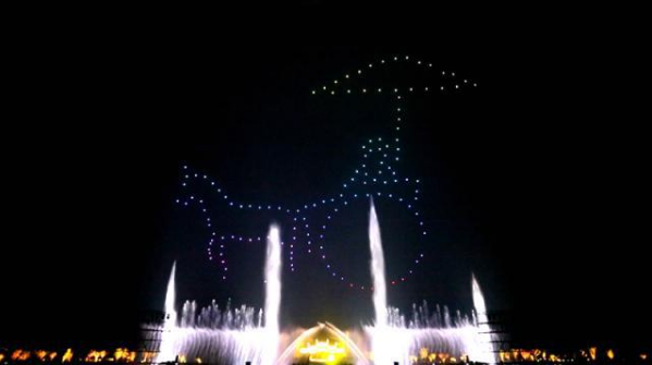 央广网济宁7月22日消息(通讯员 何纯)7月22日,第三届山东文化惠民消费季启动仪式的前夜,在尼山圣境泮水湖畔,数百架无人机演绎出凤舞尼山、孔子圣迹图等诸多震撼画面,与光影水幕的声光电一起点亮了圣地尼山的夜空。