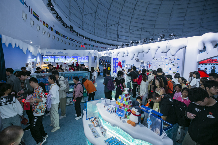 专程带孩子从德州赶来打卡的王先生表示:“在社交平台刷到好多次,一直想带孩子来亲身感受。在这里,跟着‘极宝’和‘极宝爷爷’一起了解中国41年极地科考历程,探索南极冰的奥秘,还能深度参与互动剧、集章打卡,边玩边学,孩子特别喜欢。”