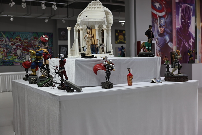 步入展厅,Labubu、漫威、迪士尼、变形金刚等热门IP手办以及众多先锋艺术家作品整齐陈列,令人目不暇接。