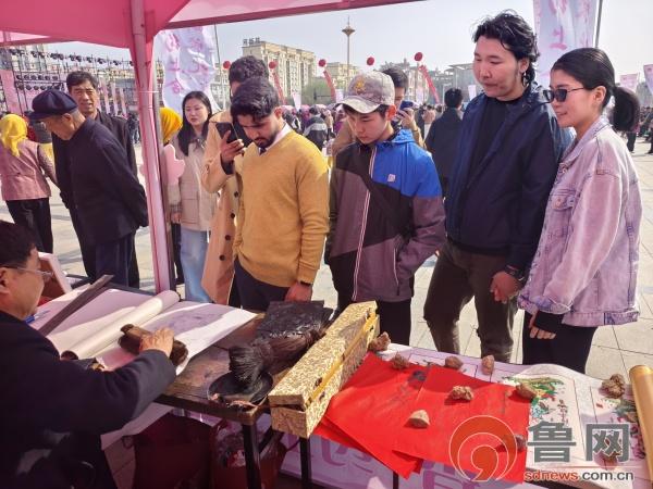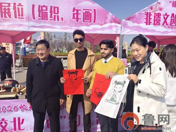 在非遗和工业文创市集,剪纸、糖画等胶州本土非遗技艺匠心尽显;农特产品展销区,草莓、西红柿、桃花啤酒等新鲜果蔬、特色美食,带着乡土的芬芳扑面而来;留学生们体验特色非遗体项目,红纸在剪刀下翻转,一幅幅寓意吉祥的桃花图案跃然纸上,亲手留住了这春日美好。“看到了中国文化里剪纸和糖画的精致,非遗是留住生活之美的方式,不同文化背景的双手共剪一朵桃花,那份跨越差异的共情,正是文化传承最动人的力量。”来自蒙古国的景舒说。