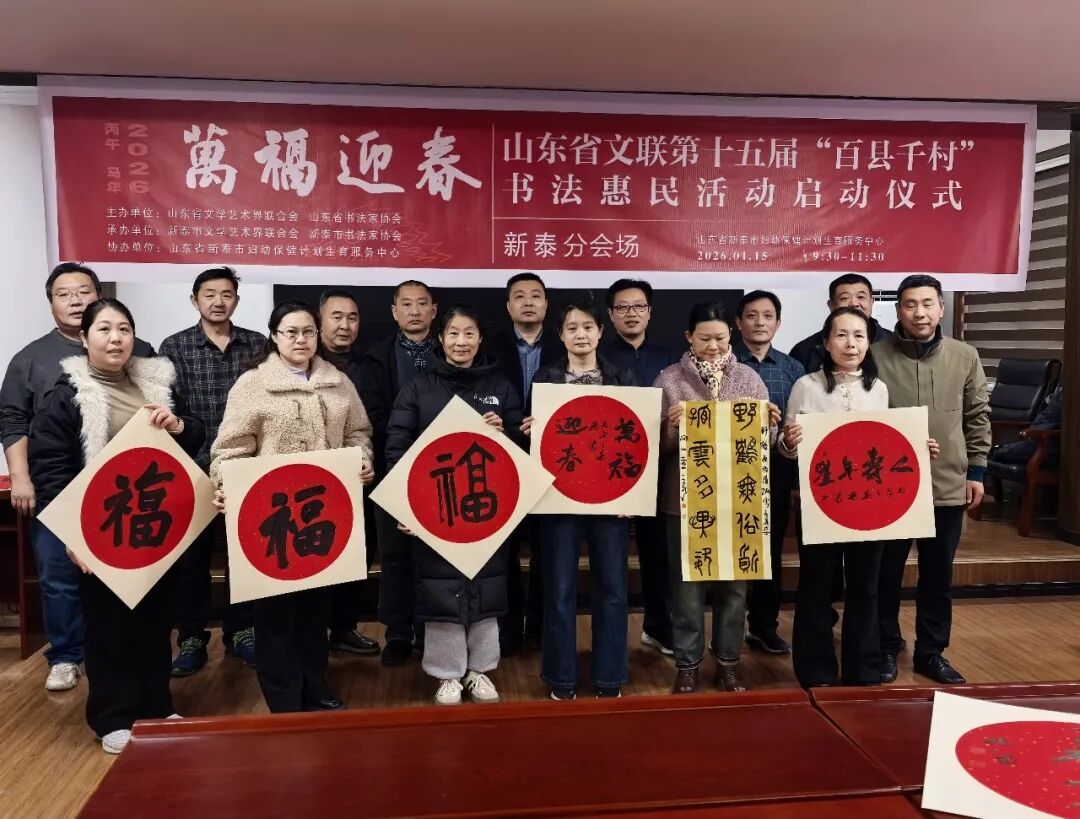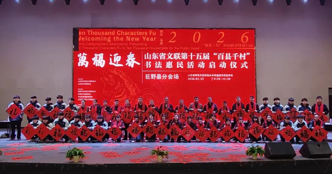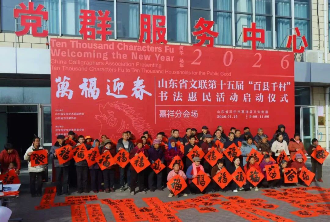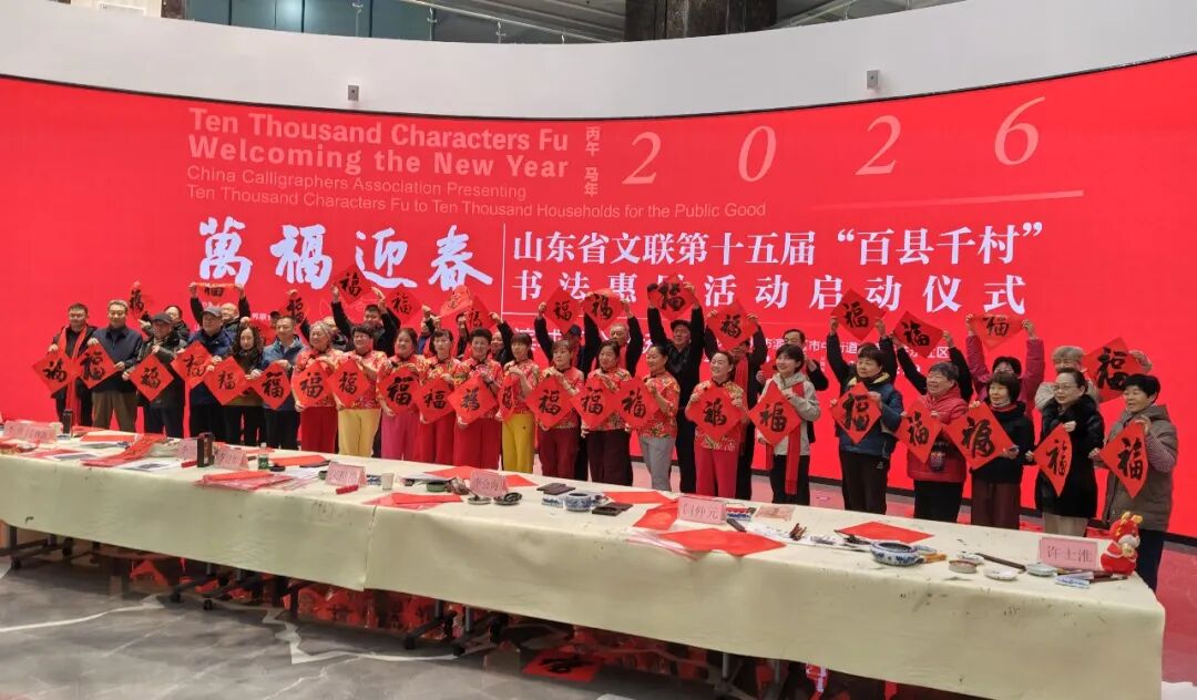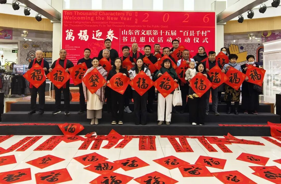 1月15日,“万福迎春——2026(丙午)马年中国书法家协会送万福进万家公益活动”启动仪式在曲阜万仞宫墙前广场举行,山东省文联第十五届“百县千村”书法惠民活动在全省16市及所属县(市、区)同步启动。