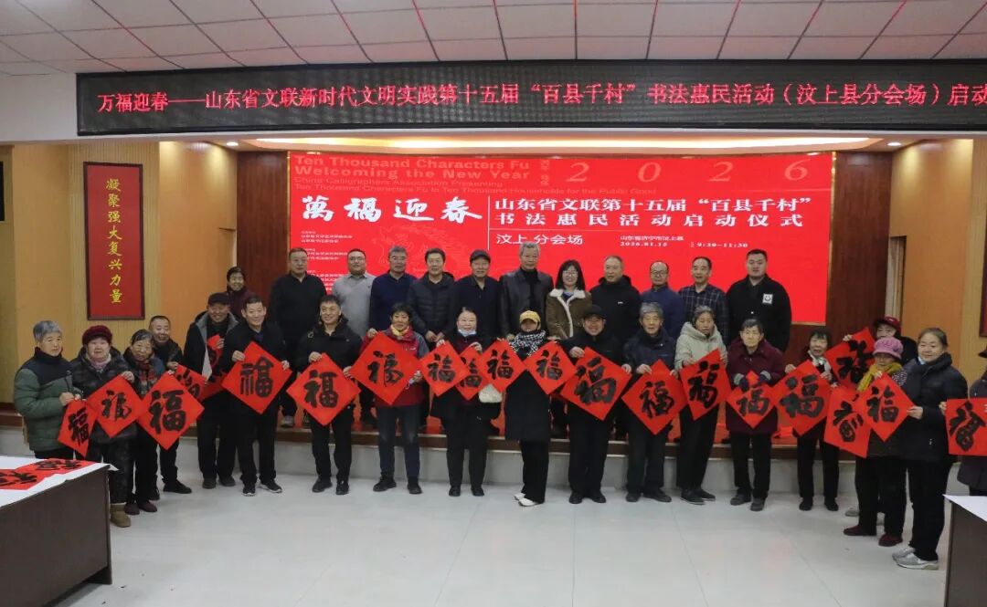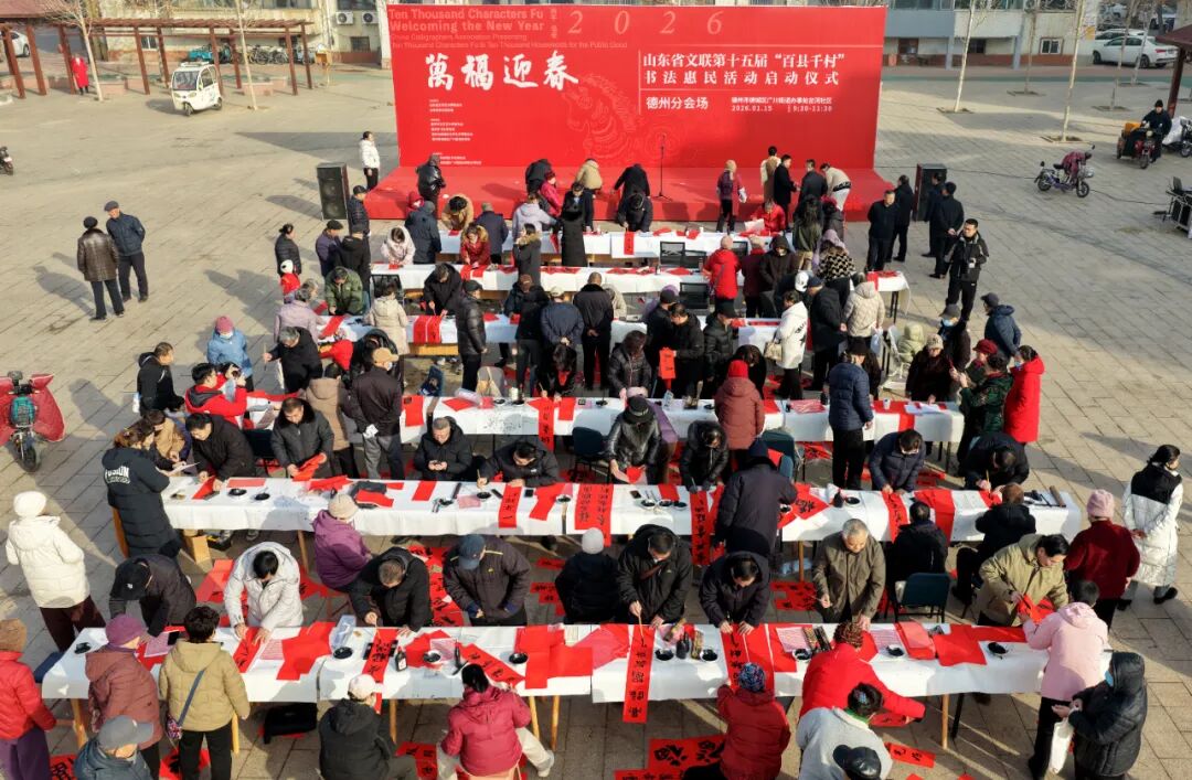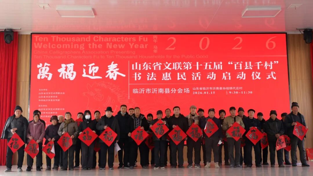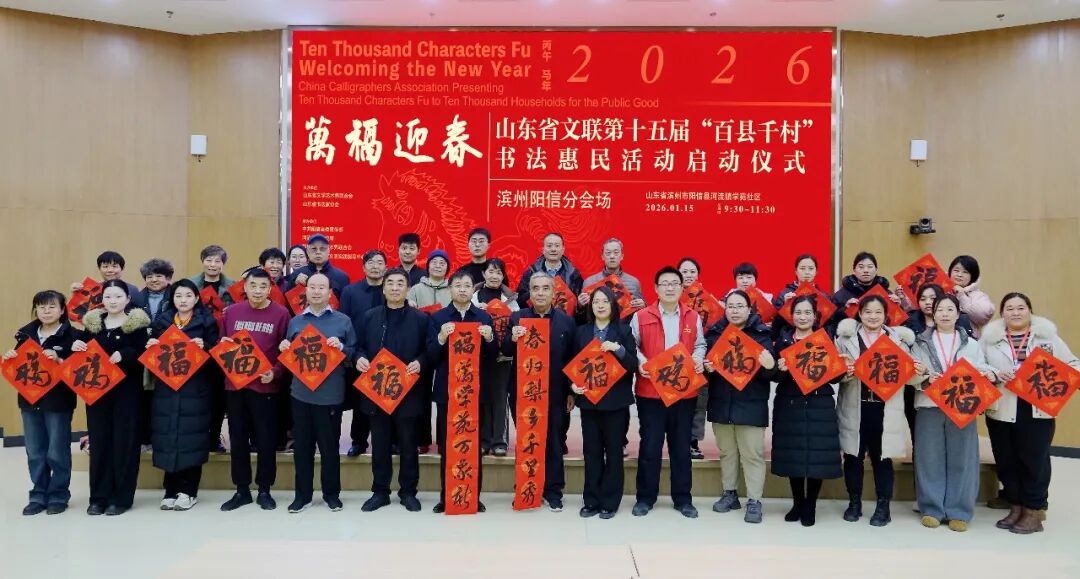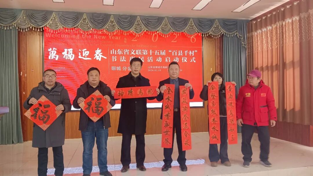 1月15日,“万福迎春——2026(丙午)马年中国书法家协会送万福进万家公益活动”启动仪式在曲阜万仞宫墙前广场举行,山东省文联第十五届“百县千村”书法惠民活动在全省16市及所属县(市、区)同步启动。