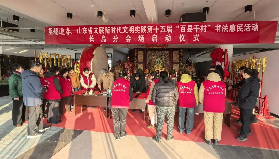 在烟台龙口市七甲镇常伦庄村,山东省书协副主席、烟台市书协名誉主席嵇小军,烟台市文联党组书记李波,烟台市文联党组成员、副主席张绍文,烟台市文联组联部主任曲永静,烟台市书协主席姜玉松,中共龙口市委常委、宣传部部长夏俊庆,龙口市文联主席王运光,七甲镇党委书记闫彪,龙口市革命老区建设促进会副会长、常伦庄村党支部书记王忠金,烟台市书协宫庆全、孙秀杰、徐喜丹、陈希军、王宁波、庄严、王利亮、高兴志、曹成智、栾少东、姜云军、戴慧媛、赵尧龙、包颖华、迟伟、陈炳运等书法家和当地群众共230余人参加了分会场启动仪式。芝罘区、莱山区、高新区、福山区、黄渤海新区、莱阳市、莱州市、蓬莱区、海阳市、栖霞市、牟平区、招远市、长岛综合试验区也同步开展活动,共有200余位书法家在3个多小时的时间里创作了春联3800余副,“福”字6000多个,书法作品430余件,举行书法大讲堂4场。