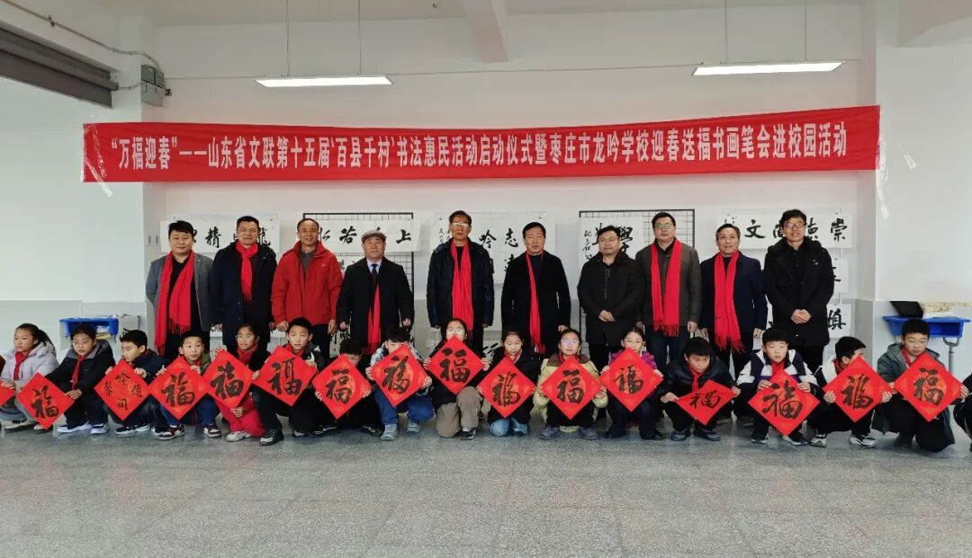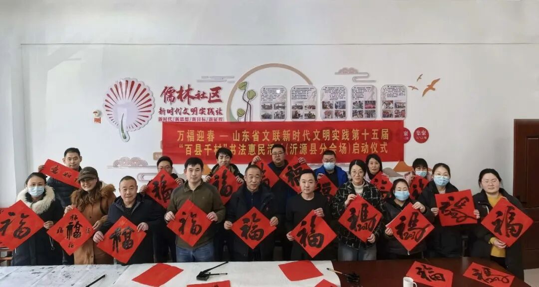 在山东曲阜万仞宫墙前广场,中国书协主席孙晓云,山东省委宣传部副部长、省电影局局长、一级巡视员程守田,山东省文联党组书记、副主席何思清,中国书协分党组成员、一级巡视员柳斌,中国书协副主席、山东省书协名誉主席顾亚龙,山东省文联党组成员、副主席马述兴,中国书协理事、山东省文联副主席、省书协主席王瑞,济宁市委常委、宣传部部长董冰,济宁市文联党组书记、主席刁允强,曲阜市委书记崔加清,书法家代表吴震启、郑晓华、王学岭、施恩波、颜奕端、杨科云、龙开胜、解小青、谢少承、董倚桥、程志宏、蒋乐志、逄春伟、郝晓明、杨国栋、陈培站、王道雨、张作昌、谢长伟、郑志群、王超、张会学、刘磊、杜庆龙、高卫兵、赵依房、韩益、郝亚同、宋秉民、朱本群、石云之、李文彬、孔卫、孔佑强、王燕、王洋,济宁市、曲阜市宣传文化系统有关负责同志,以及济宁市优秀青少年书法作者,曲阜市先模人物、优秀党员和高校师生代表、文艺志愿者等500余人参加了启动仪式。40名书法家与10名优秀青少年书法作者共同挥毫泼墨,为群众书写春联和“福”字两千余件。